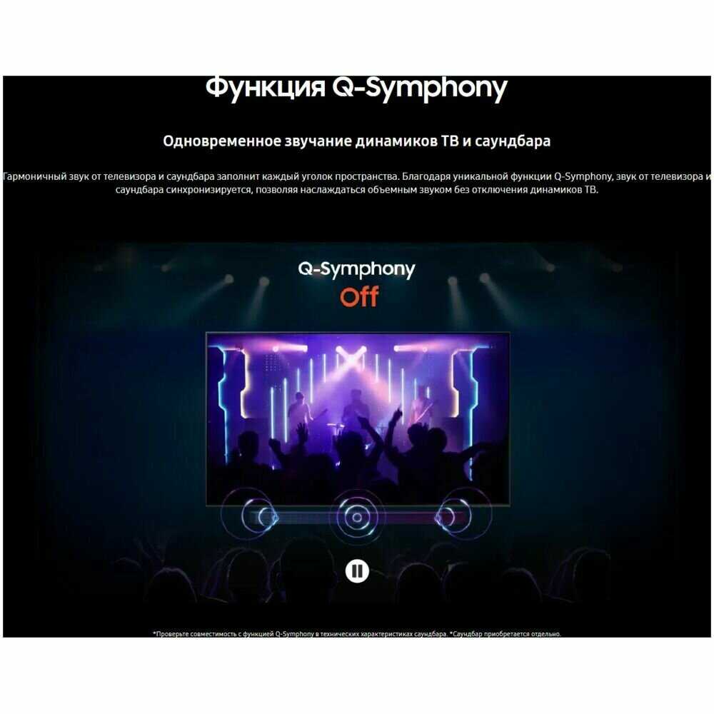 Встроенные динамики большинства моделей обеспечивают чёткость диалогов, но страдают от недостатка басов и «плоского» звучания в динамичных сценах. Пользователи единогласно рекомендуют подключение саундбара (особенно серии HW-Q800A и выше) для раскрытия потенциала аудиодорожек фильмов и музыки. Технология HDMI eARC в совместимых моделях обеспечивает синхронную передачу аудио без задержек, что критично для киноманов и геймеров. -