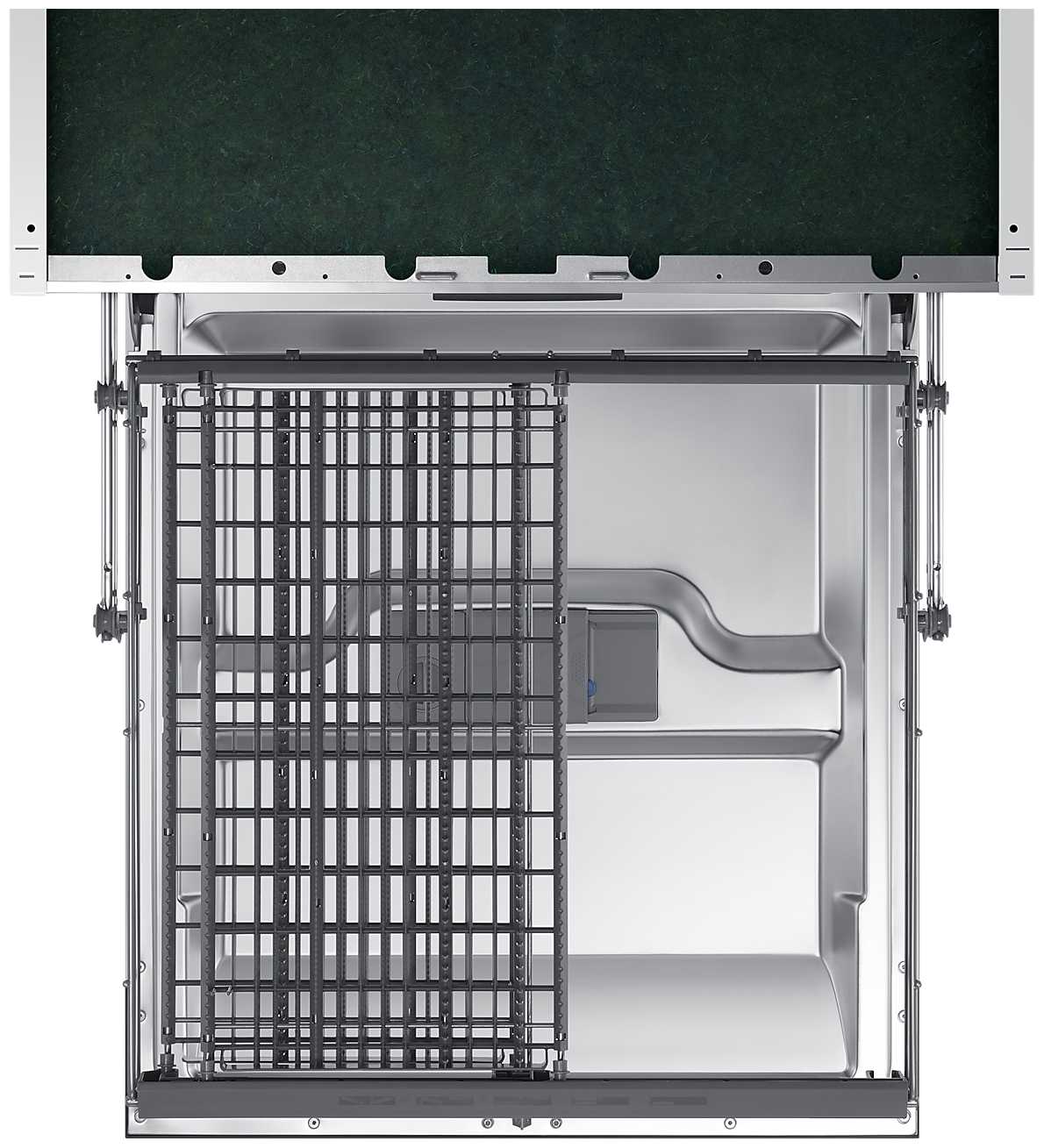 - Верхняя корзина для вилок, ложек и мелочей освобождает место внизу.