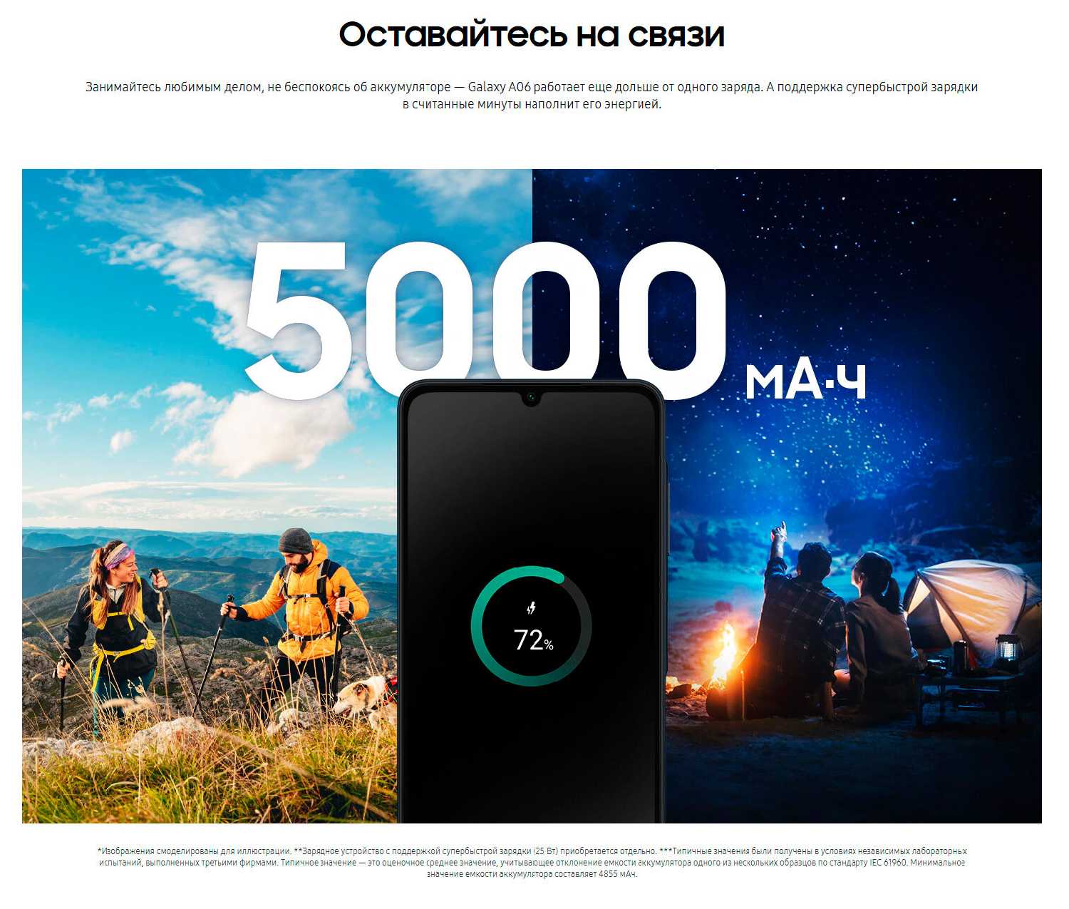 - Батарея на 5000 мАч с длительным временем автономной работы:
