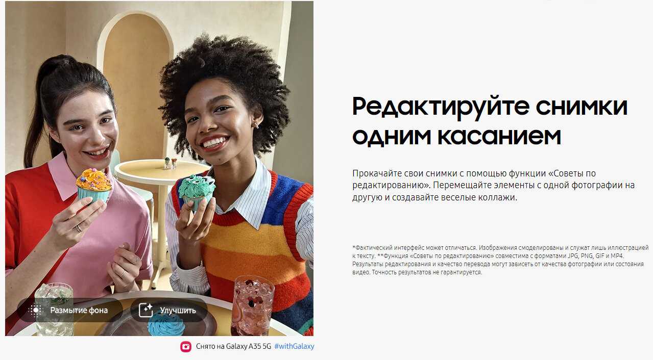 - - Посредственное качество съёмки фото и видео. Достаточно быстро "съедает" заряд аккумулятора. Не все нравится в оболочке One UI.