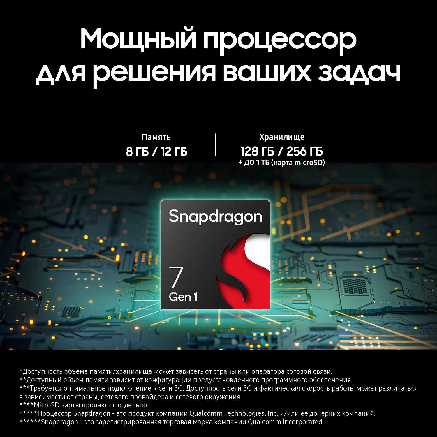Процессор Snapdragon 7 Gen 1 в теории обеспечивает достаточную мощность для повседневных задач и мобильных игр. Интерфейс One UI в основном работает плавно, приложения открываются быстро. Однако отмечаются неожиданные подтормаживания и "хрипы" звука при одновременной работе нескольких приложений, особенно при воспроизведении музыки на фоне других задач. Отзывчивость сенсора экрана некоторые пользователи оценивают как худшую, чем у старых моделей. Серьезное неудобство создает гибридный слот: невозможность одновременного использования двух SIM-карт и карты microSD – приходится выбирать. Батарея на 5000 мАч держит заряд около дня при активном использовании (звонки, фото, мессенджеры), но ее автономность оценивается как хуже, чем у 3-4-летнего M52. Быстрая зарядка 45W на практике не демонстрирует значительного преимущества перед более медленными стандартами.