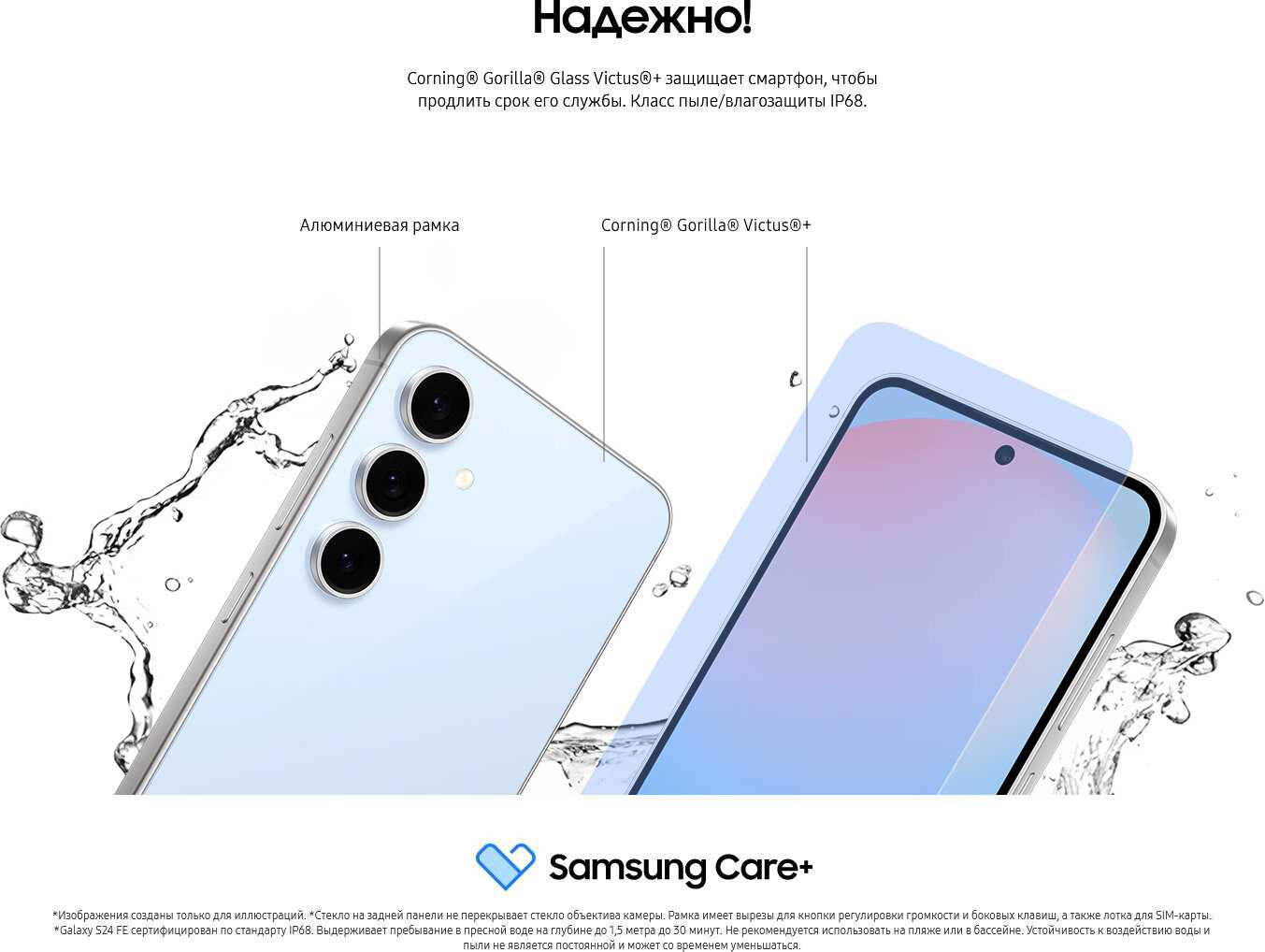 - Стекло Gorilla Glass Victus 2 на экране выдерживает падения с высоты 1.5 м.