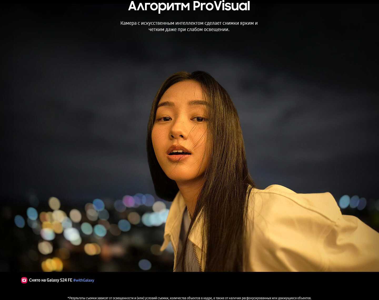 - Ночной режим автоматически активируется, уменьшая шумы на 30% по сравнению с S21 FE.