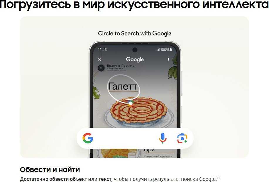 Galaxy AI позволяет редактировать фото: удалять объекты, дорисовывать фон, менять стилистику снимков (например, превращать в карандашный рисунок). Также ИИ используется для синхронного перевода во время звонков и преобразования аудиозаписей в текст с возможностью сокращения. -