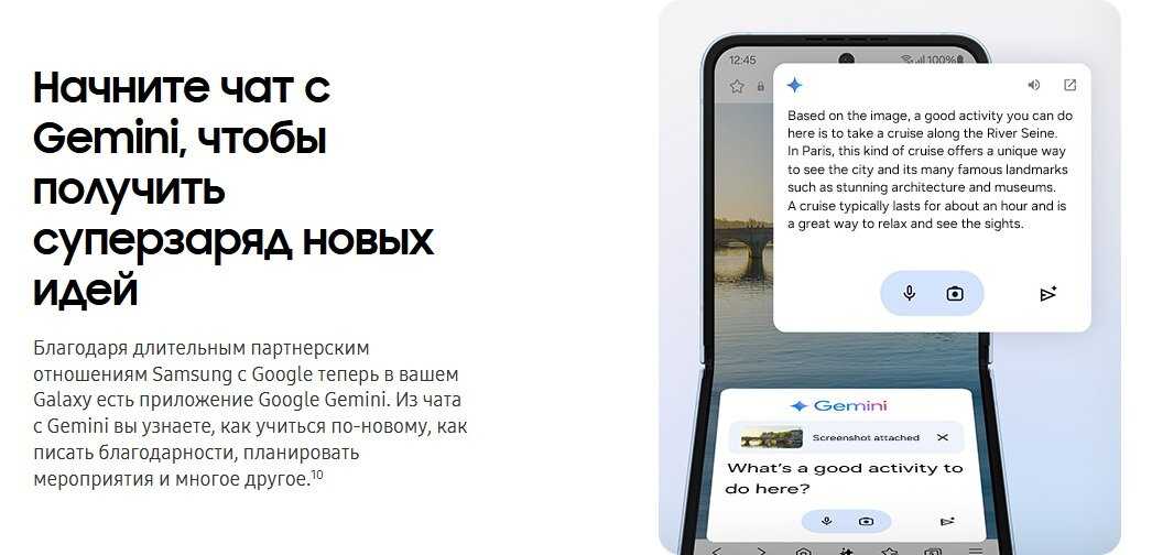 Долго думала над покупкой данного формата смартфонов, выбирала из множества брендов и остановилась на самсунге. Во-первых, сама система на самсунге приятно, плавно работает, у меня не реклам, раздражающих, много фишек для подключения к телевизору, порадовала экосистема. Во-вторых, камера по возможностям круче других брендов и как на s24, есть и 50мп, и стабилизация на видео, а еще удобно снимать им в полусложенном виде. Понравилась новая фишка генерации текста, собственные дорисовки на фото, которые он делает с помощью искусственное интеллекта. Здорово, что из маленького сложенного квадратика раскладывается в большой экран, плавный и красочный. Изгиб, так же, который не чувствуется и виден если к нему присматриваться. Отмечу его защиту от влаги и пыли, как объяснил консультант, что говорить о надежности конструкции, могу не переживать, если под дождь попаду) Мощности мне хватает для любых моих задач, а еще и поиграть в игры, иногда когда есть время. В общем, я рада приобретению смартфона, преимуществ много, долго можно перечислять) думаю следующий будет только Флип 7!