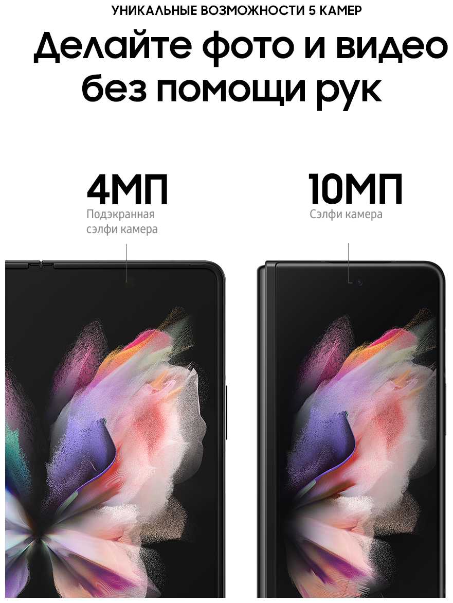 Экраны, только ради этого было куплено данное устройство: цветопередача, яркость и насыщенность цветов превзошли все мои ожидания, их просто с запасом! В сложенном виде многие пишут, что узкий экран не удобен после стандартных смартфонов, я бы этого не сказал. Мне удобно, в руке отлично лежит, основная масса приложений на узком экране так же располагается, как и на стандартном, более того можно регулировать ширину окон клавиатуры, полей просмотра итд. Раскрываю телефон в планшетный вариант для просмотра новостей, фото, видео, текстовых редакторах и наверное всё, остальные манипуляции делаю на узком экране (телефон в сложенном виде). Производительность телефона высокая: не в играх, не в видео и загрузке галереи не было случая торможения или подвисания. Антенны мощные, сравнивая с защищенными моделями с 5G в помещениях с толстыми стенами Самсунг более стабильно принимает связь и интернет, когда другие модели не работают. Камера: я не нашёл недостатков по камере, так как она полностью соответствует заявленным характеристикам, глупо её сравнивать с моделью S21 S22 Ultra, где у одной из камер 108 мегапикселей, но превосходит практически все модели сторонних производителей, сравнил с 13 моделью "огрызка", где реально качественная камера стоит, но не увидел большого преимущества последнего: при большом увеличении фото на яблокофоне чуть меньше зерна, чем у Самсунга, цветопередача у Самсунга лучше, но здесь правильней сравнивать на одном экране созданные фото, нежели на экранах данных телефонов.