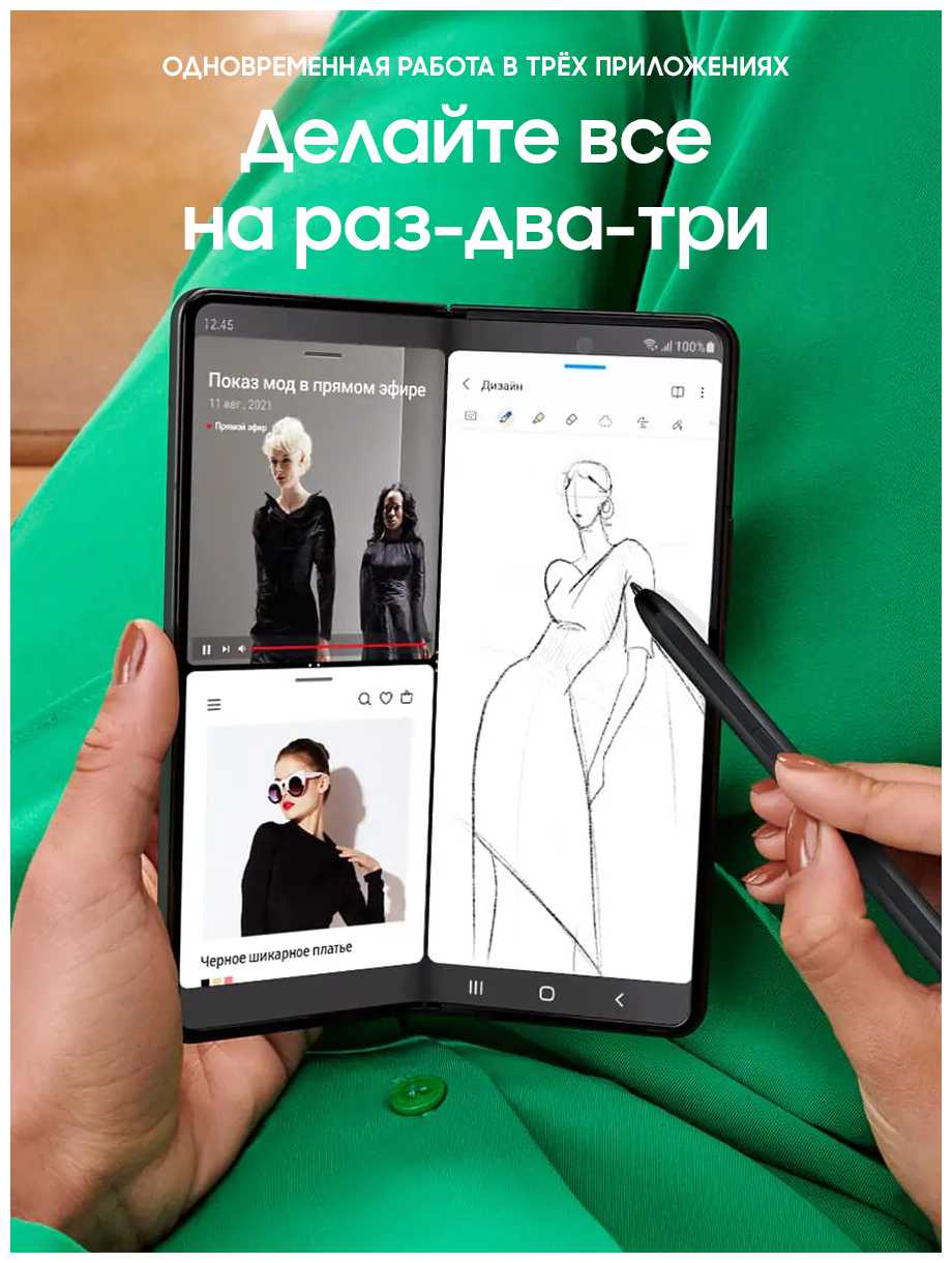 - Большой складной экран для многозадачности и просмотра контента: