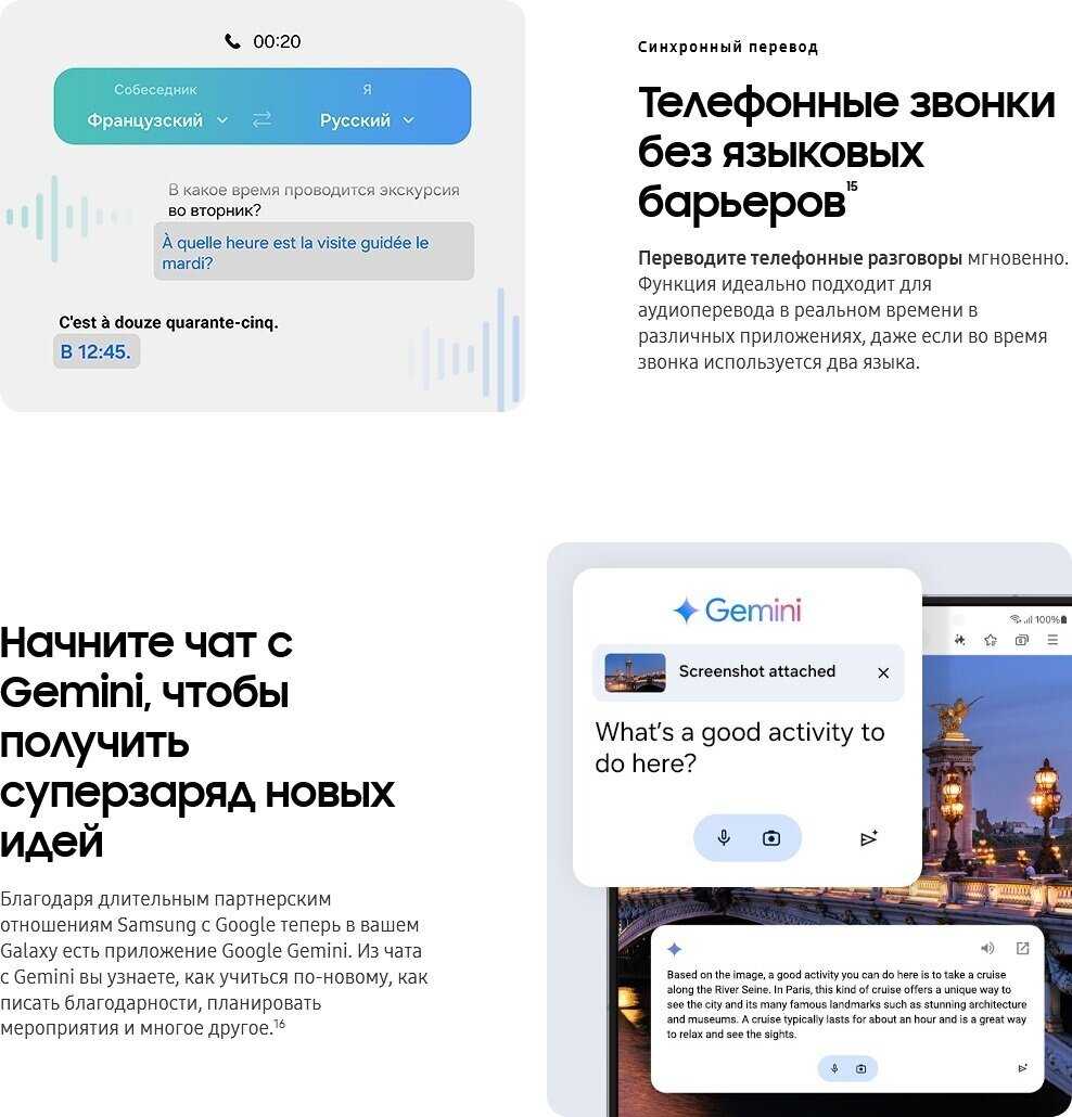 - Оптимизация энергопотребления с помощью ИИ: система анализирует использование приложений и продлевает автономность на 15–20%.