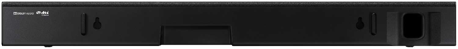 - Минималистичный корпус (высота 5.3 см) позволяет разместить саундбар под монитором или телевизором без потери пространства.