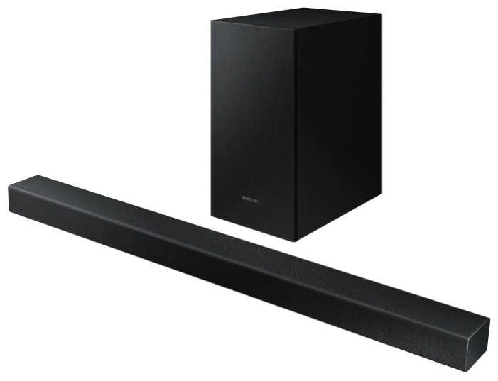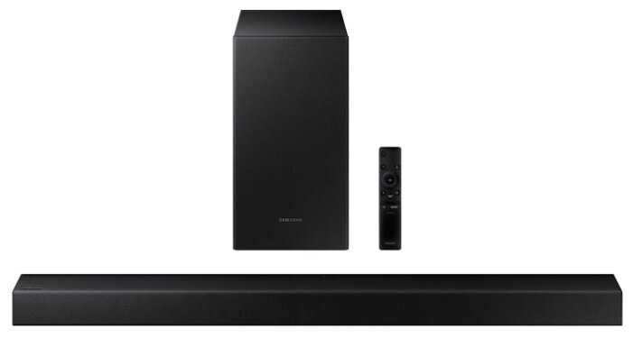 - + Звук весьма неплох (учитывая форм-фактор и цену, конечно). Компактность, легкость в подключении, наличие всех необходимых интерфейсов, один пульт управления (для телевизоров Samsung, остальные не пробовал =))