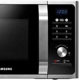 Многие пользователи, перешедшие с более старых микроволновок Samsung, отмечают изменение логики управления. Для запуска разогрева теперь требуется не просто повернуть ручку, а сначала нажать кнопку «СВЧ», затем выставить время вращением энкодера и лишь потом нажать «Старт». Это вызывает неудобство у тех, кто привык к мгновенному запуску. Однако новые пользователи находят интерфейс интуитивно понятным, с четко подписанными механическими кнопками, что исключает необходимость постоянно обращаться к инструкции. -