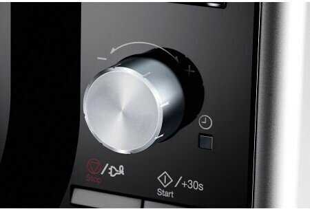 Кнопка «Старт 30 сек» позволяет мгновенно запустить разогрев на максимальной мощности с шагом в 30 секунд. Это очень удобно для быстрого подогрева небольших порций, например, чашки чая или порции еды для ребенка. Однако во время уже запущенного процесса добавить время можно только этой же кнопкой (+30 сек), но не вращением энкодера, что в некоторых сценариях менее удобно. -