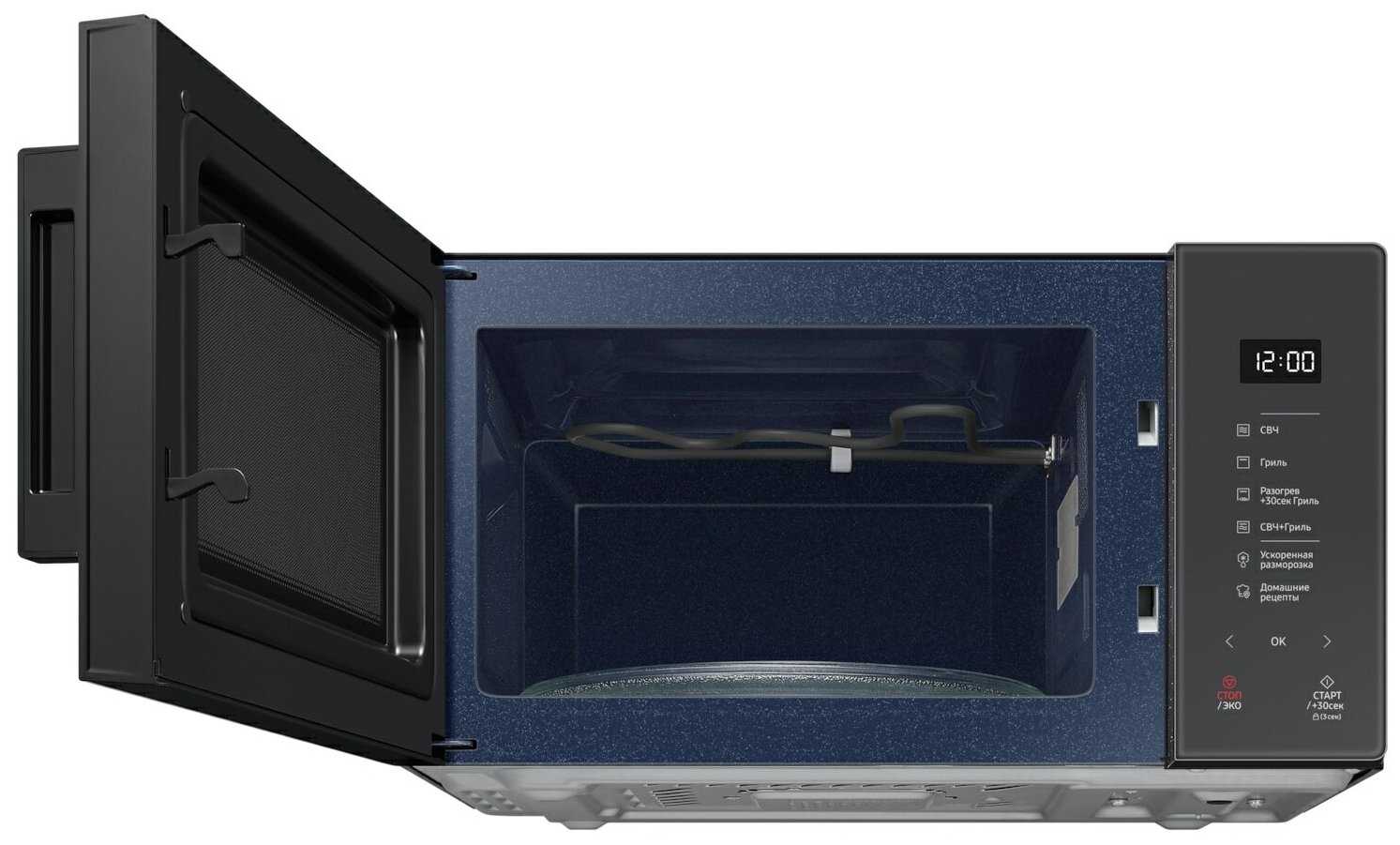 Надежность и сборка Отмечается значительный разброс в качестве сборки: часть пользователей хвалит плотное прилегание дверцы и отсутствие люфтов, другие столкнулись с зазорами до 1 мм, бугристыми стыками и даже случаями самопроизвольного включения при открытии. Вентиляционные отверстия на корпусе при работе гриля сильно нагреваются. Прежние модели Samsung служили 10–18 лет, но долговечность текущей линейки под вопросом из-за упрощения конструкции.
