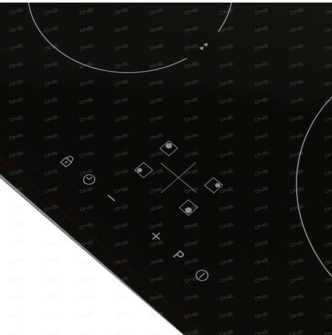 | Безопасность : | защитное отключение конфорок, кнопка блокировки панели, индикатор остаточного тепла |