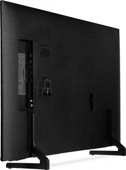 - Тонкий корпус с узкими рамками и металлическими ножками, выглядит премиально и вписывается в интерьер.