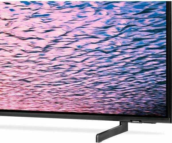 Изображение яркое, сочное с хорошей цветопередачей, глубоким чёрным и высокой детализацией в 4K и HDR-контенте, пользователи отмечают эффект присутствия как в кинотеатре. Углы обзора широкие, картинка не искажается при просмотре сбоку, подходит для кухни или зала. Однако на стандартных каналах SD/HD видна пикселизация, а стандартные настройки Samsung слишком яркие и неестественные — требуется ручная корректировка. Некоторые жалуются на мерцание экрана и блики при ярком освещении, хотя матовый экран минимизирует отражения. -