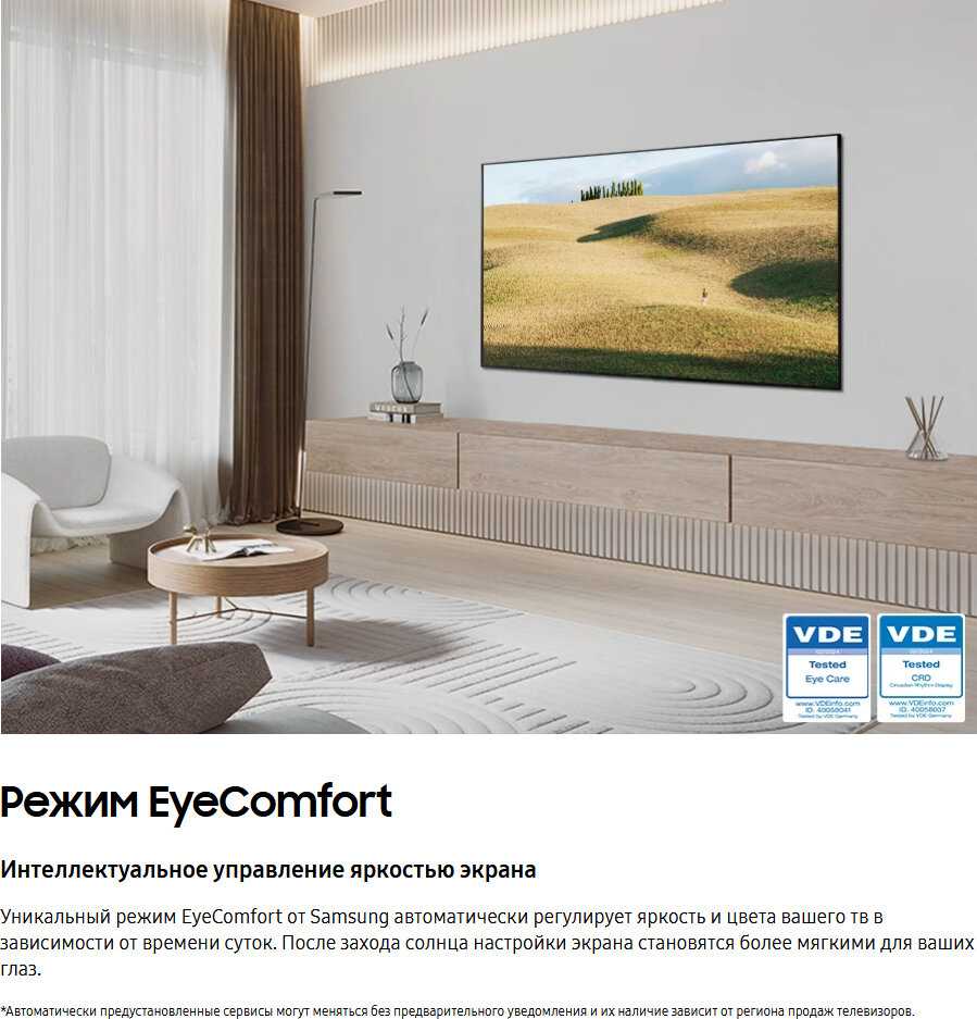 Отмечаются случаи выхода подсветки из строя через 1.5-2 года, особенно при постоянной работе на максимальной яркости. Перегрев управляющего блока (One Connect) может вызывать треск корпуса или высокочастотный писк. Для продления срока службы советуют ограничивать яркость до 80% и обеспечивать вентиляцию задней панели. -