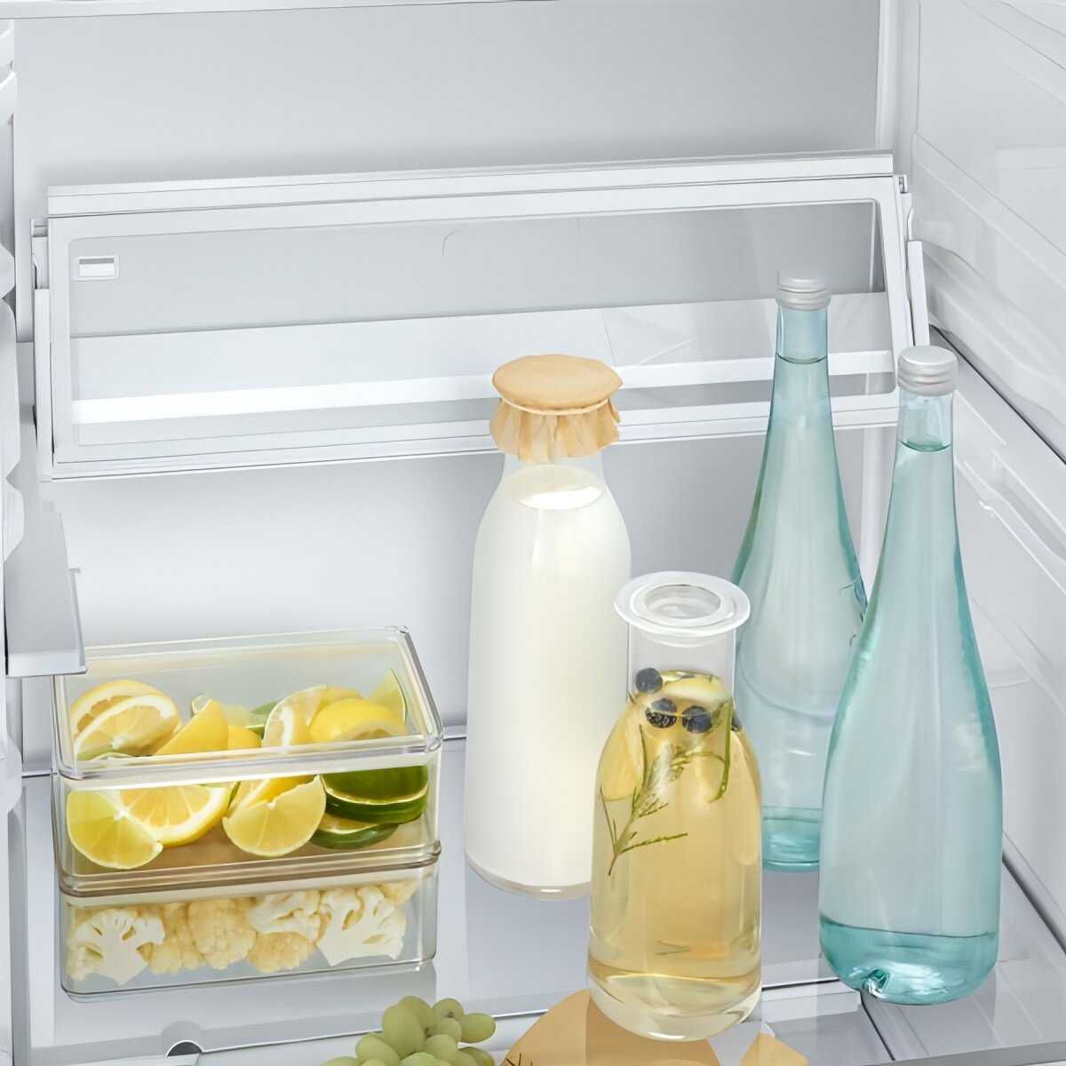 Полка с механизмом складывания (Easy Slide Shelf) – самый спорный элемент. Хотя она позволяет размещать высокие предметы, её пластиковые крепления ненадёжны: уже при 2-3 кг нагрузки возникает заметный прогиб, а резкие движения могут вызвать поломку держателей. Многие владельцы предпочитают фиксировать её в верхнем положении и не использовать по прямому назначению, отмечая, что для бутылок удобнее освобождать дверные полки.