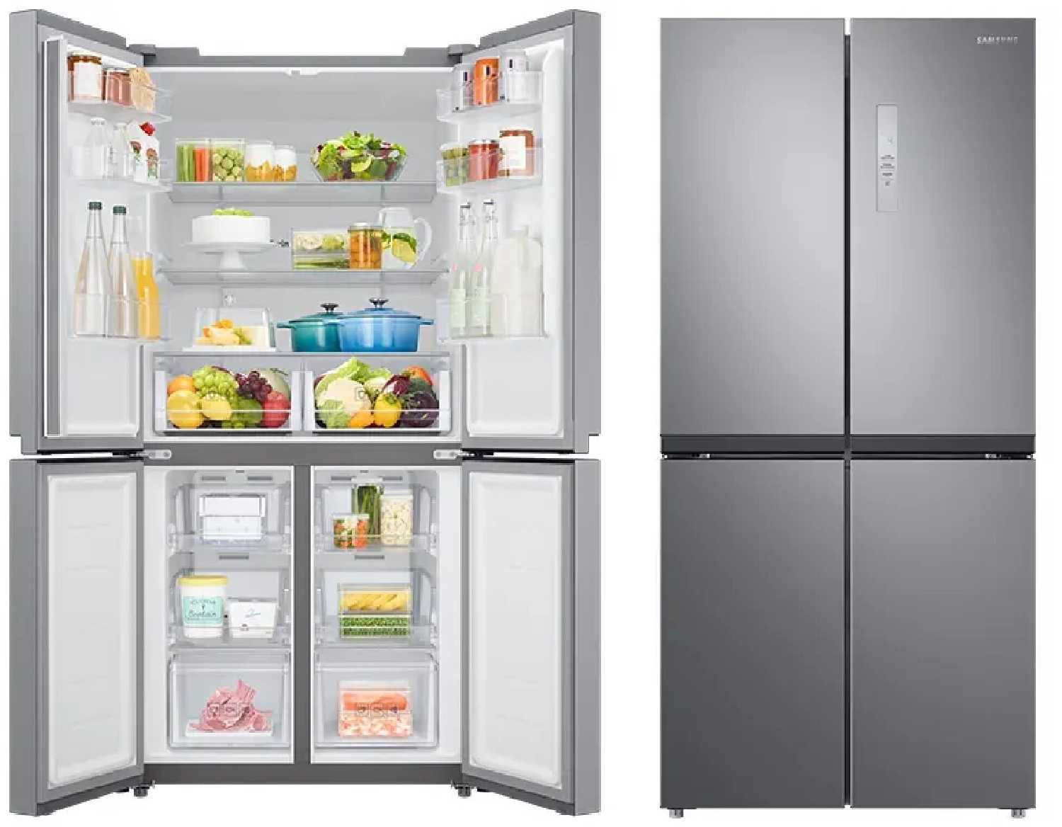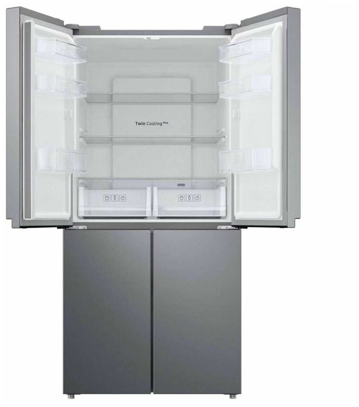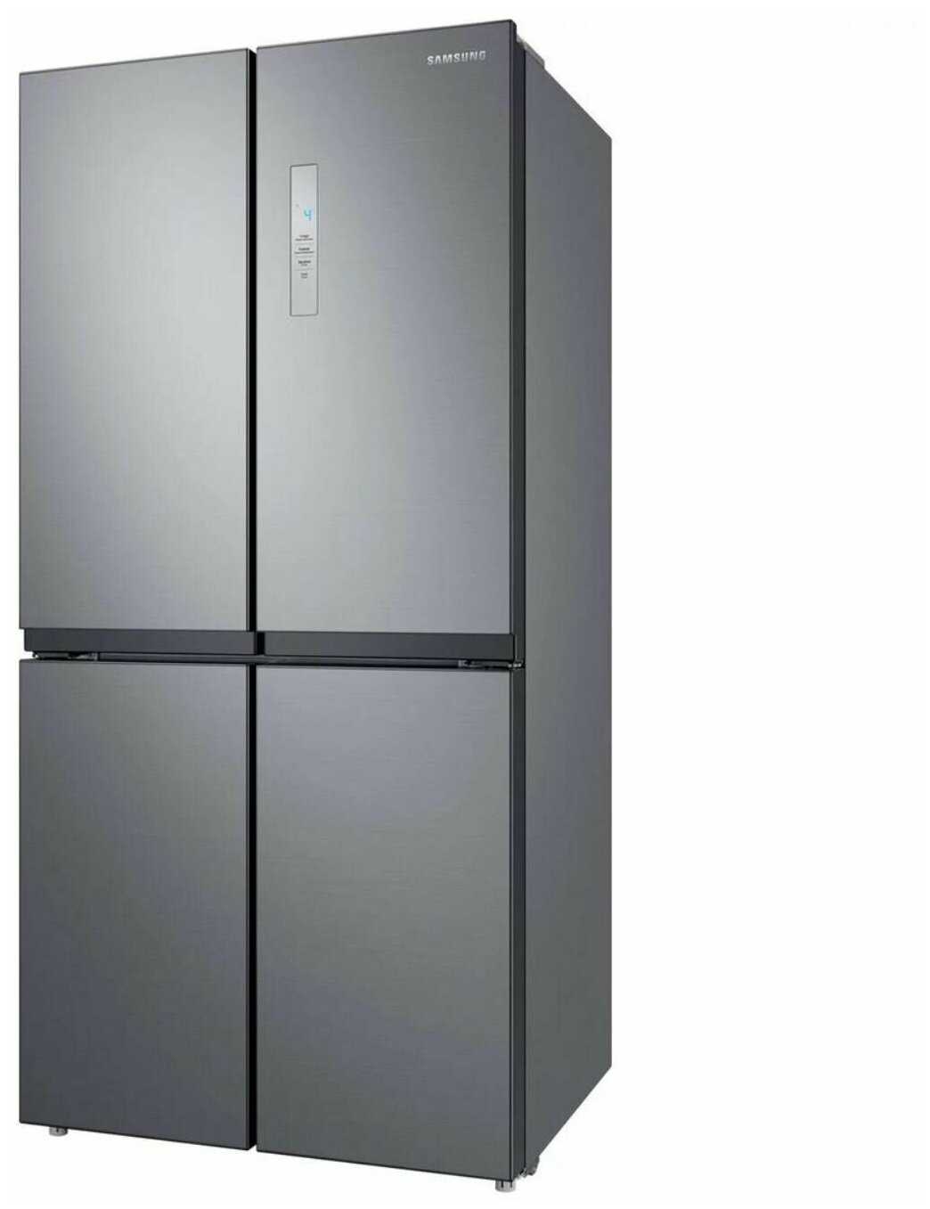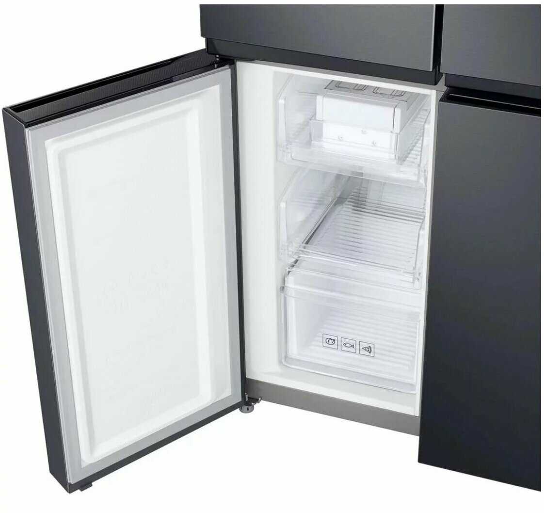 - Четыре дверцы открывают только нужный отсек, минимизируя потери холода при доступе к морозилке или холодильной части.