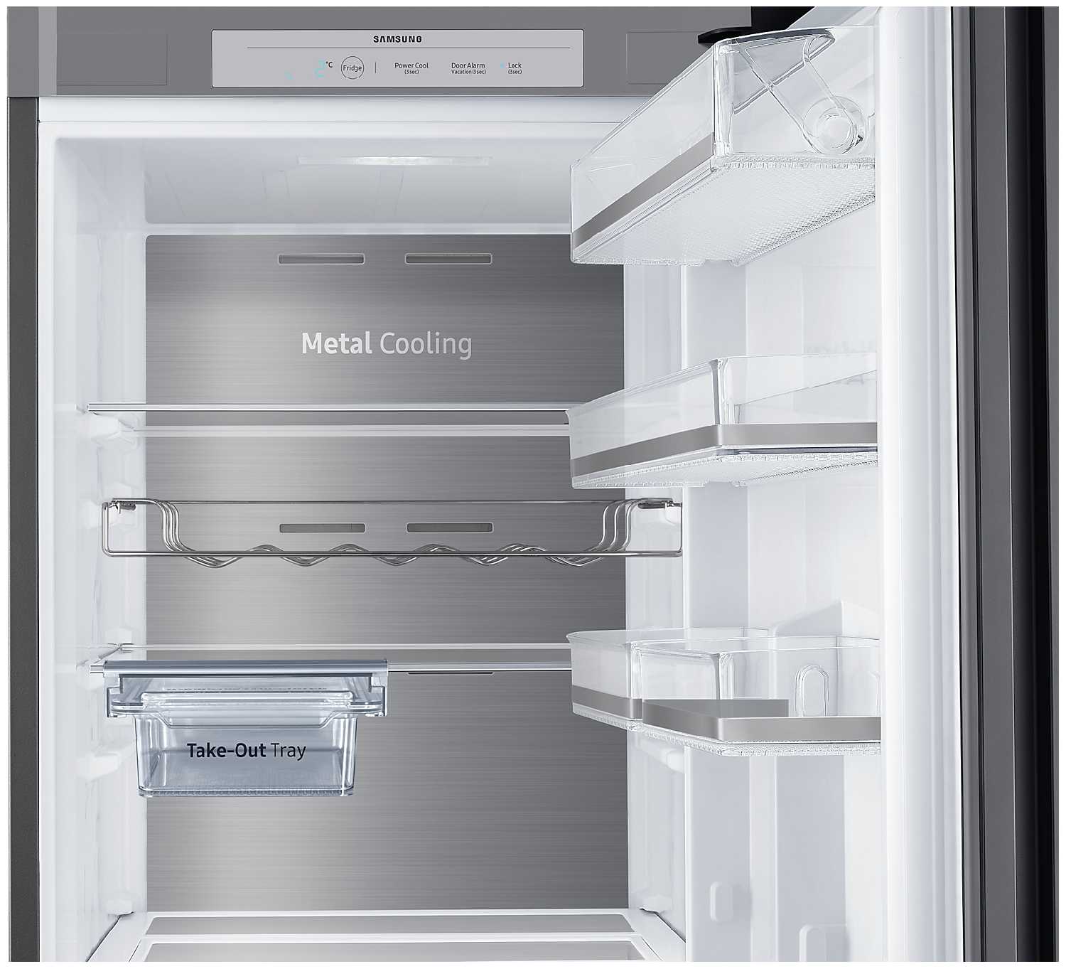 Выбирал себе холодильник по отзывам мастеров по ремонту холодильников. Хотел купить LG, но цена была большая. Samsung тоже карейский и сборка Вьетнам. Сделан очень хорошо, взади присутствуют медные трубки. Шум на растоянии от 3 до 5 метров вобще не слышу, тихий. Цвет серебристый металик, бока чуть темнее, подсветка светодиодная сверху и в середине по бокам. Ящики добротный нехлибкие, полки стеклянные, передняя левая ножка регулируется. Взади нет решотки как у старых холодильников. Ручка большая, нажатием в левую сторону открывается очень легко, одним пальчиком. Вместимость продуктов хорошая, синяя подсветка градусника. Холодильником очень довольны.