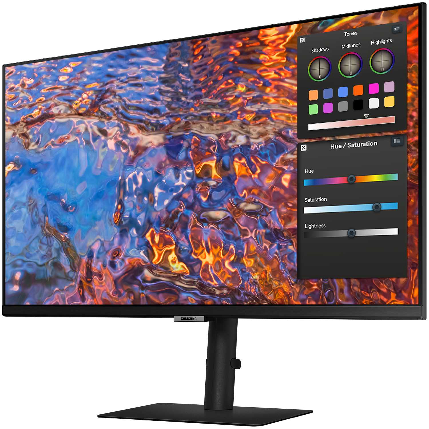 - + Отличный 4к монитор, тонкие рамки, регулировка по высоте и наклону, а также поворот экрана в разные стороны, можно использовать вертикально. Правильный оттенки изображения, особенно кожа человека выглядит естественно. Множество разъёмов, в том числе type c, по нему коннектится без проблем с MacBook, заряжает и выдаёт изображение. Поддерживает HDR, цветовой профиль DCI P3 - охват 100%. В комплекте с монитором идут фирменные провода Samsung для подключения к разъёмам.