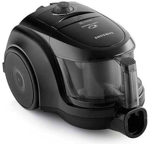 Компактный пылесос с контейнером для пыли Samsung сразу производит солидное впечатление: чёрный глянцевый корпус выглядит стильно и современно, размеры позволяют хранить его даже в небольшой квартире без ущерба для пространства, а вес около 4 кг делает переноску лёгкой задачей для любого взрослого. При распаковке радует богатая комплектация по меркам бюджетного сегмента — телескопическая металлическая труба, универсальная щётка для ковров с выдвижным ворсом, широкая насадка для паркета и ламината, которая легко проходит под мебелью, плюс стандартная щелевая насадка, иногда спрятанная внутри корпуса в специальном отсеке. Регулятор мощности на корпусе с несколькими положениями от минимума до максимума сразу настраивает на удобство, ведь не нужно тянуться к ручке на расстоянии, а длинный шнур с автосвёрчиванием позволяет сразу подключить и начать уборку без поисков удлинителя. Первое включение подтверждает заявленную мощность: на максимуме щётка намертво прилипает к ковру, поднимая даже ковровые дорожки, а воздух выходит горячим потоком сзади, не обжигая ноги, как в некоторых моделях с боковым выбросом. Впечатление усиливается манёвренностью — большие колёса на корпусе позволяют пылесосу "летать" за пользователем по гладкому полу, не требуя усилий на толкание. Однако глянцевый пластик сразу собирает отпечатки и царапины, а лёгкий запах нового пластика при первом запуске напоминает, что это не премиум-устройство, хотя он выветривается после 2-3 уборок. В целом, первое знакомство оставляет ощущение надёжного рабочего инструмента для дома, где важны простота и эффективность без лишних наворотов.Мощность всасывания