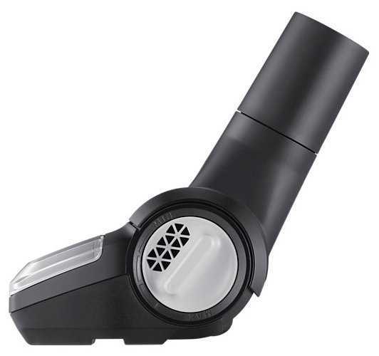 - Щетка «пол/ковер» с переключателем режимов: для ковров щетина опускается, для гладких поверхностей — поднимается. Резиновые края защищают мебель.