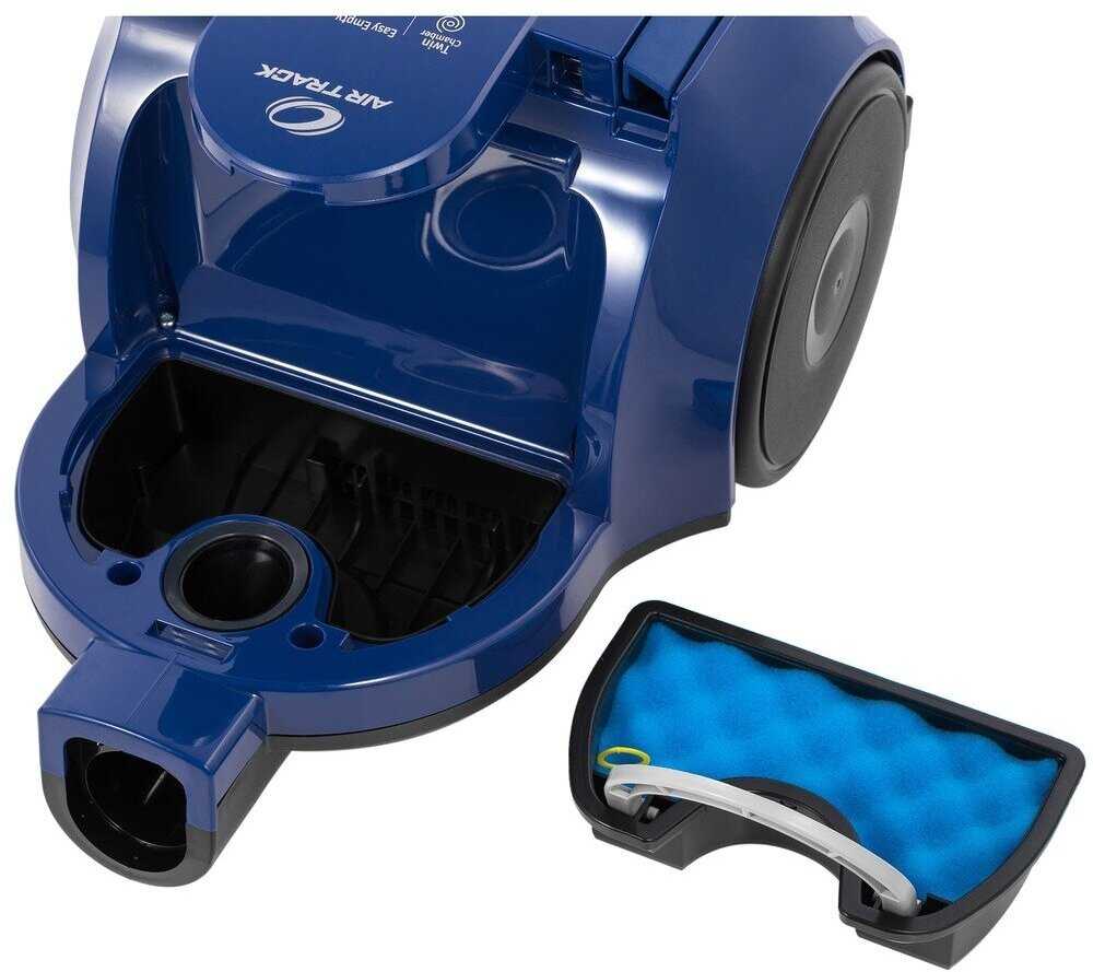 - - В прошлой модели, а она у нас до сих пор трудиться на даче, был небольшой внутренний фильтр 10мм на 50мм, который устанавливается на всасывании внутри пылесоса, здесь его нет. Либо не он не предполагается, хотя место для него есть, либо просто забыли установить. А он нужен, чтобы в моторный отсек не попадали крупные частицы.