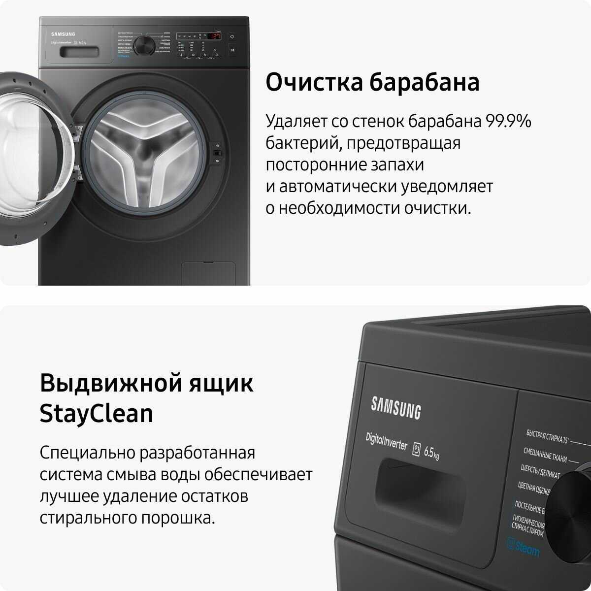 Eco Bubble активно генерирует пену для удаления загрязнений, что снижает необходимость в высоких температурах. Однако технология работает только в программе «Экономичная стирка эко» (холодная вода без подогрева). Для шерсти и деликатных тканей эта функция недоступна, что подтверждено сервисной службой Samsung. -