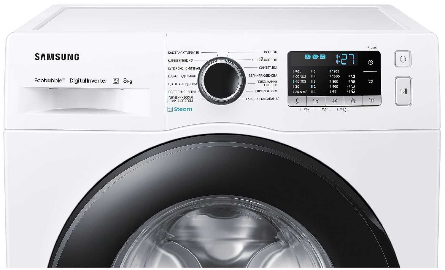 Самсунгу доверяем, поэтому просмотрев предложения магазинов, выбрали 8 литровую экобабл, с комбинированным управлением. Шайба выбора режимов, сенсор на опции выбора (температура,...