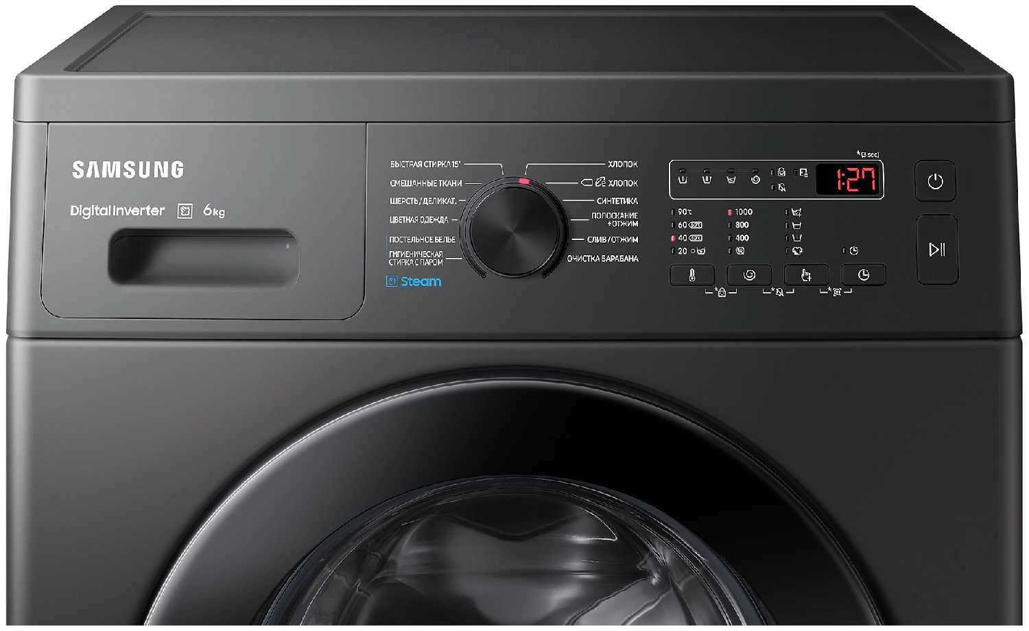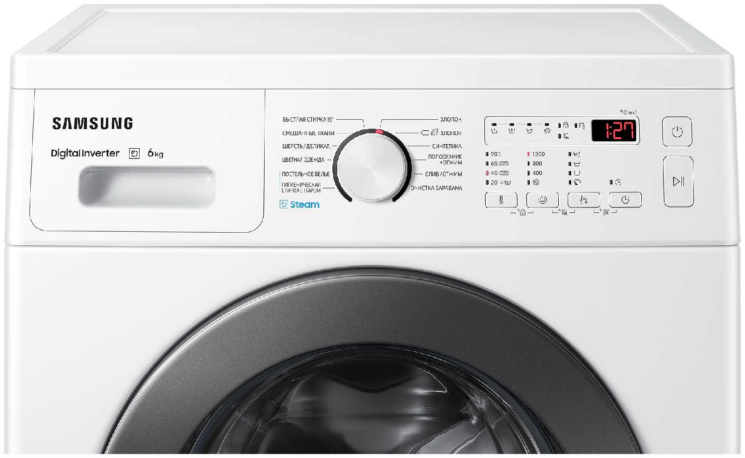 - Расход воды — 39 л за цикл, что на 15% меньше, чем у предыдущих моделей Samsung.