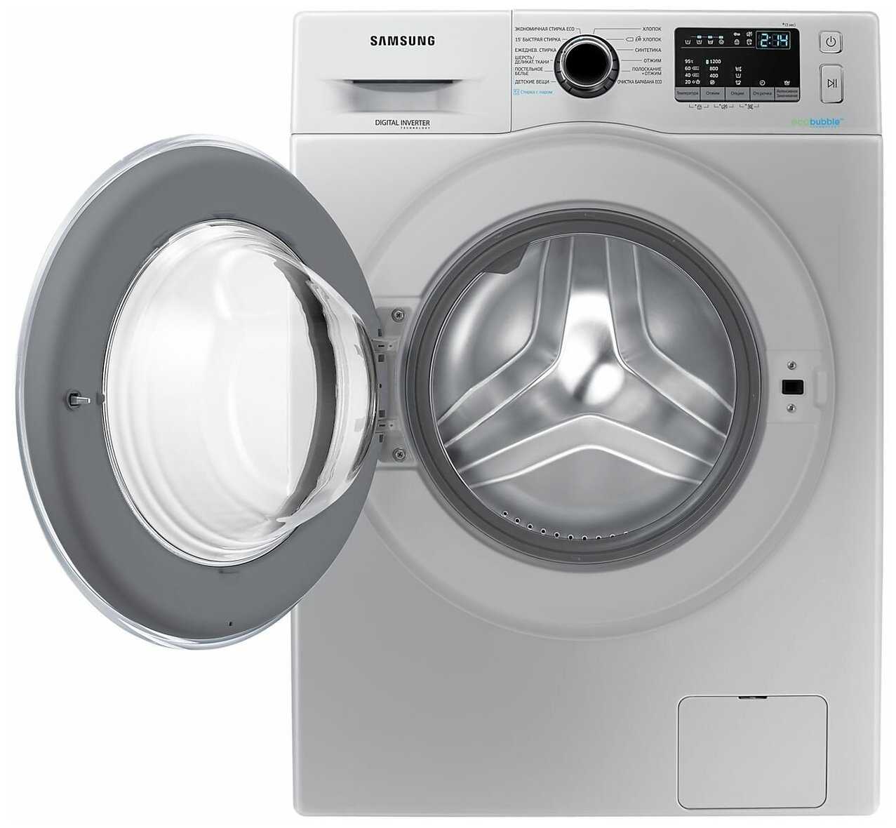 - + Samsung, качество, инверторный двигатель, современные технологии: пузырьковая система, стирка с паром; достаточно тихая, потребляет немного энергии, что важно, т.к. большинство программ стирки 2-3,5 часа. 6 кг вполне достаточно для семьи 3-4 человека. Имеется предварительная стирка.