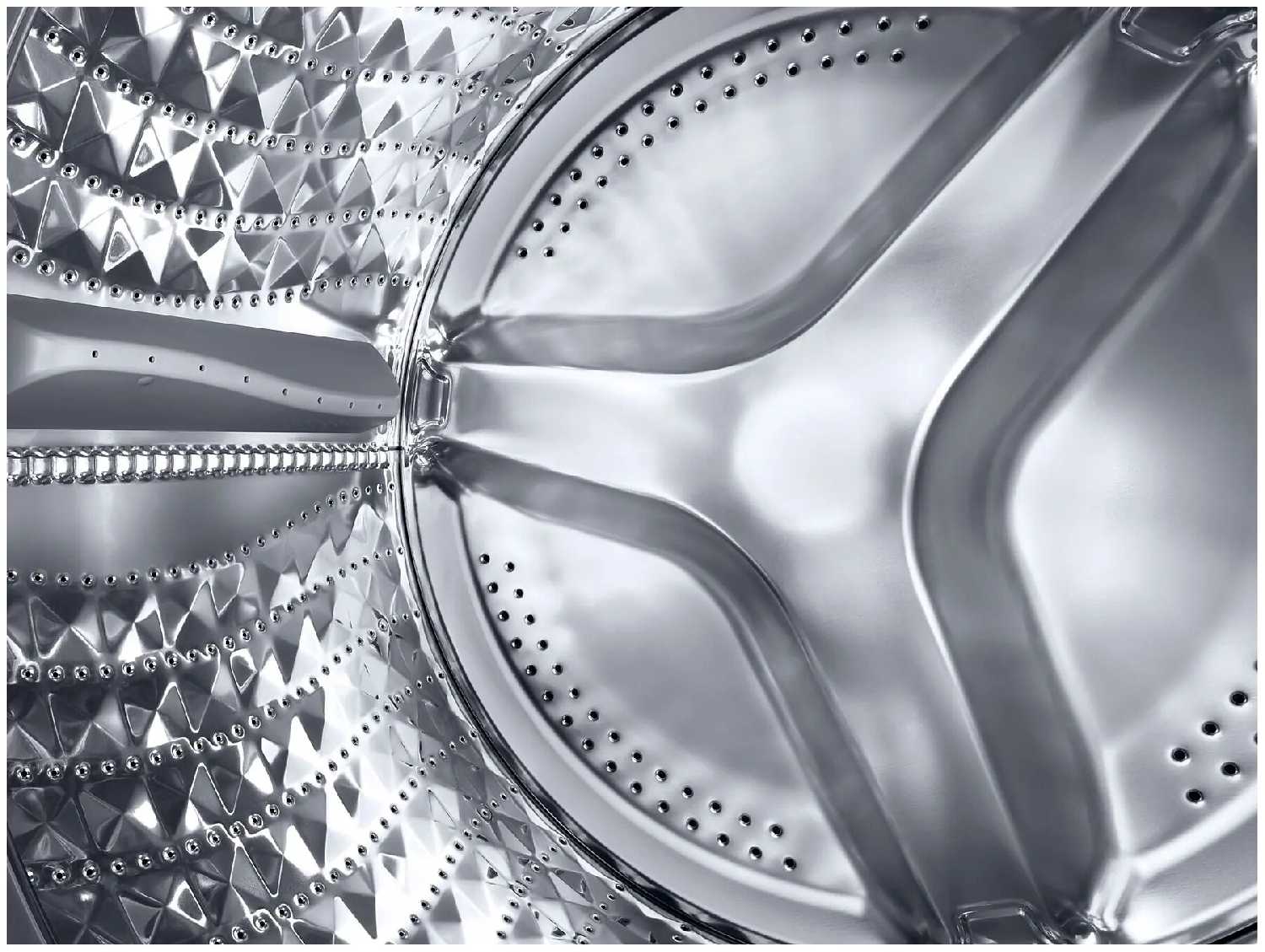 - Барабан из нержавеющей стали Diamond Drum исключает повреждение тканей за счет особой перфорации.