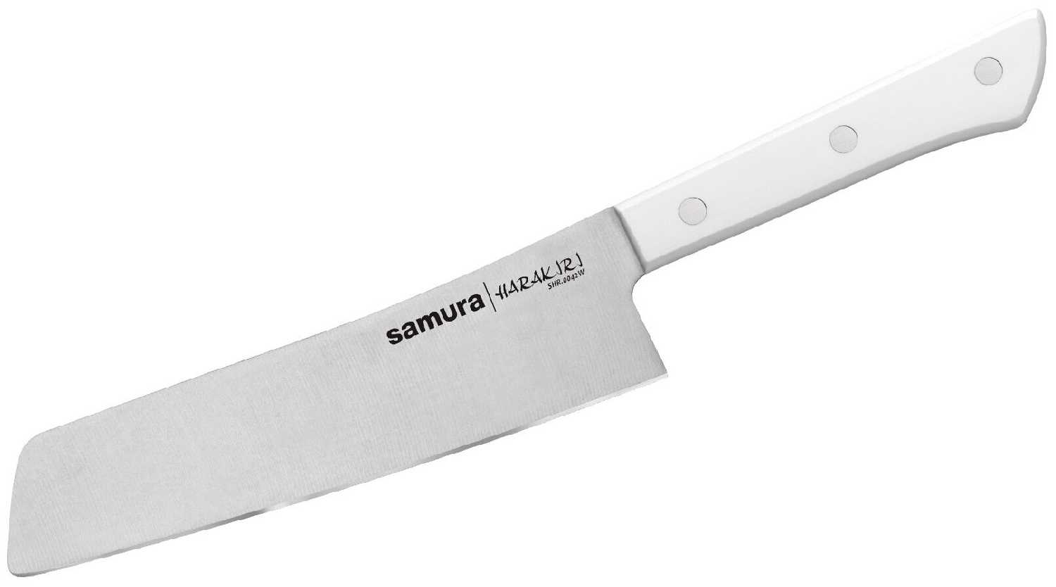 | Подробная комплектация : | SHR-0042B Нож кухонный "Samura HARAKIRI" соврем. накири 174 мм, корроз.-стойкая сталь, ABS пластик в блистерной упаковке. Количество - 1 шт. |