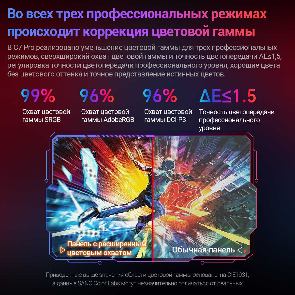 - Реалистичные цвета без кислотности после калибровки улучшают точность в графических программах, где дельта E ниже 2.