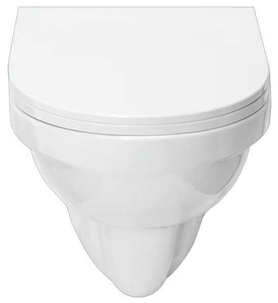 - + Хороший унитаз. Крепёж открытый, на шпильках, то есть самый надёжный. Сиденье прочное, с металлическим крепежом.