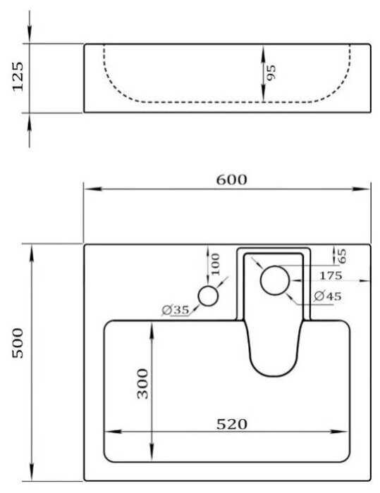 | Расположение размеченного отверстия под смеситель : | в центре |