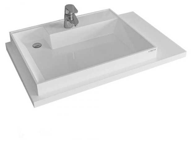 - + Лаконичный дизайн; удобно использовать над стиральной машиной, поскольку смещен излив; возможность монтировать небольшую тумбу при ширине от 80см