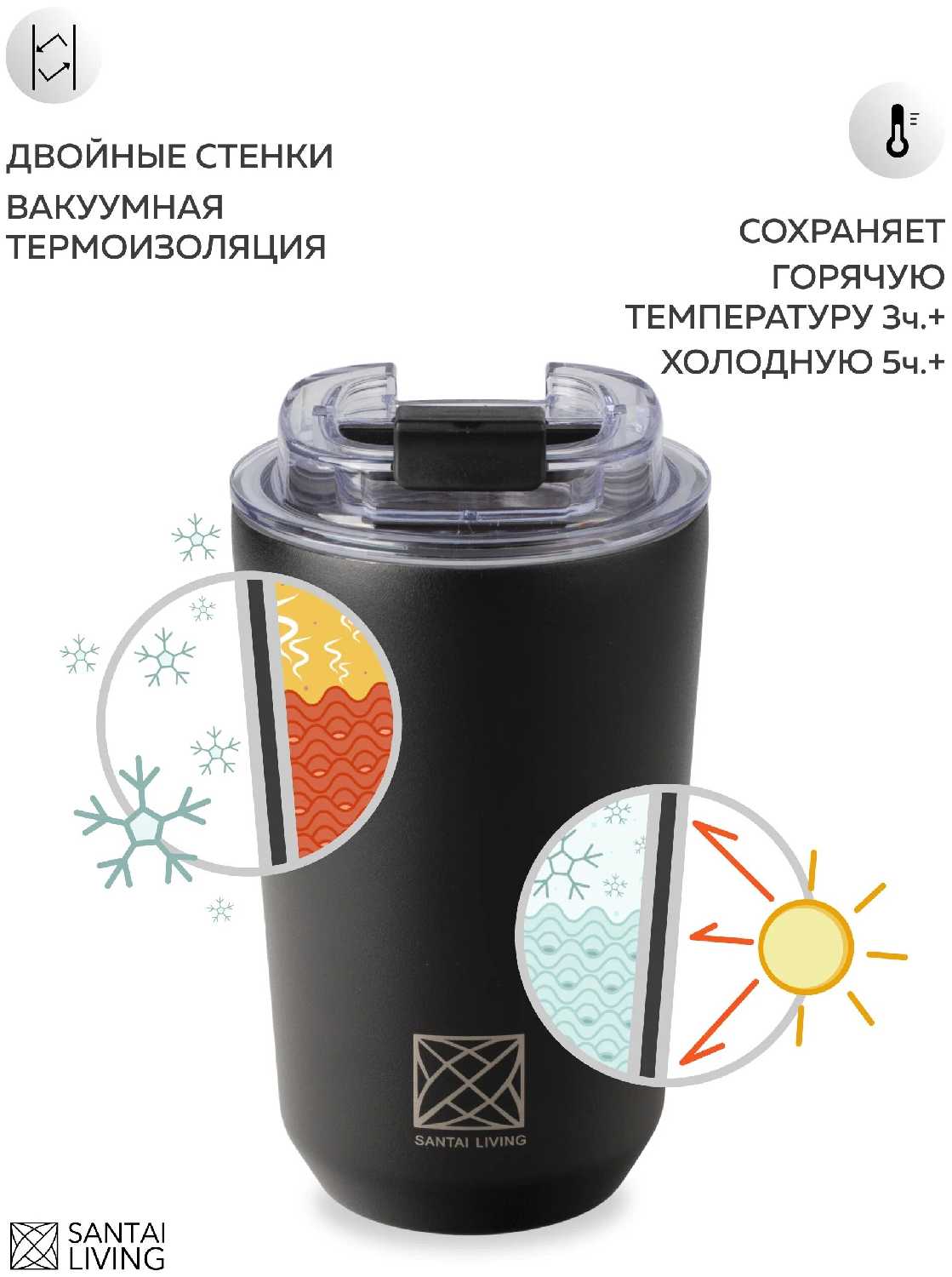 Приятный черный цвет придаёт ей стильный вид, а удобная форма позволяет легко держать кружку в руке. Одним из главных достоинств данной термокружки является её способность удерживать температуру: горячие напитки остаются горячими, а холодные — холодными на протяжении длительного времени.
