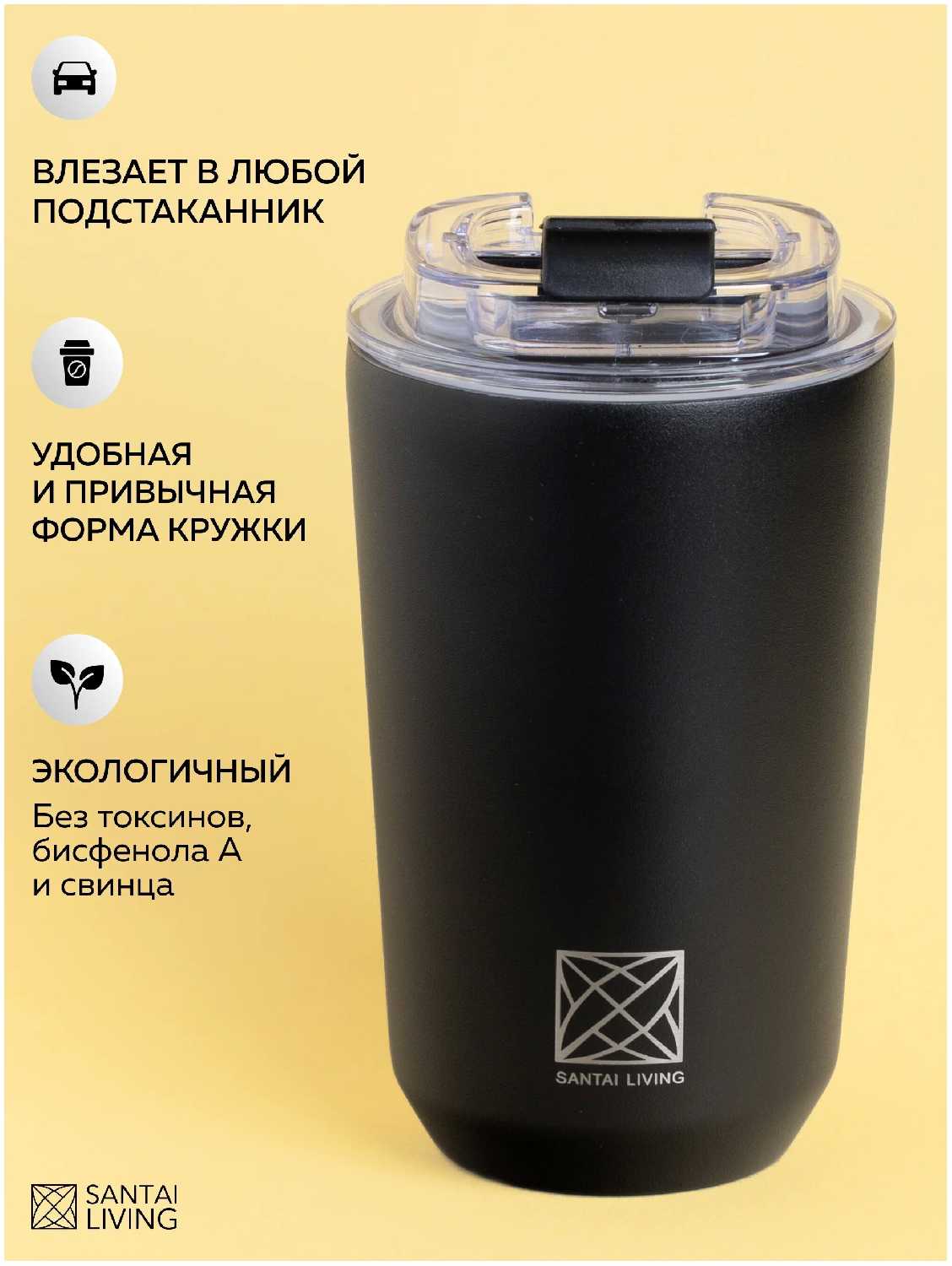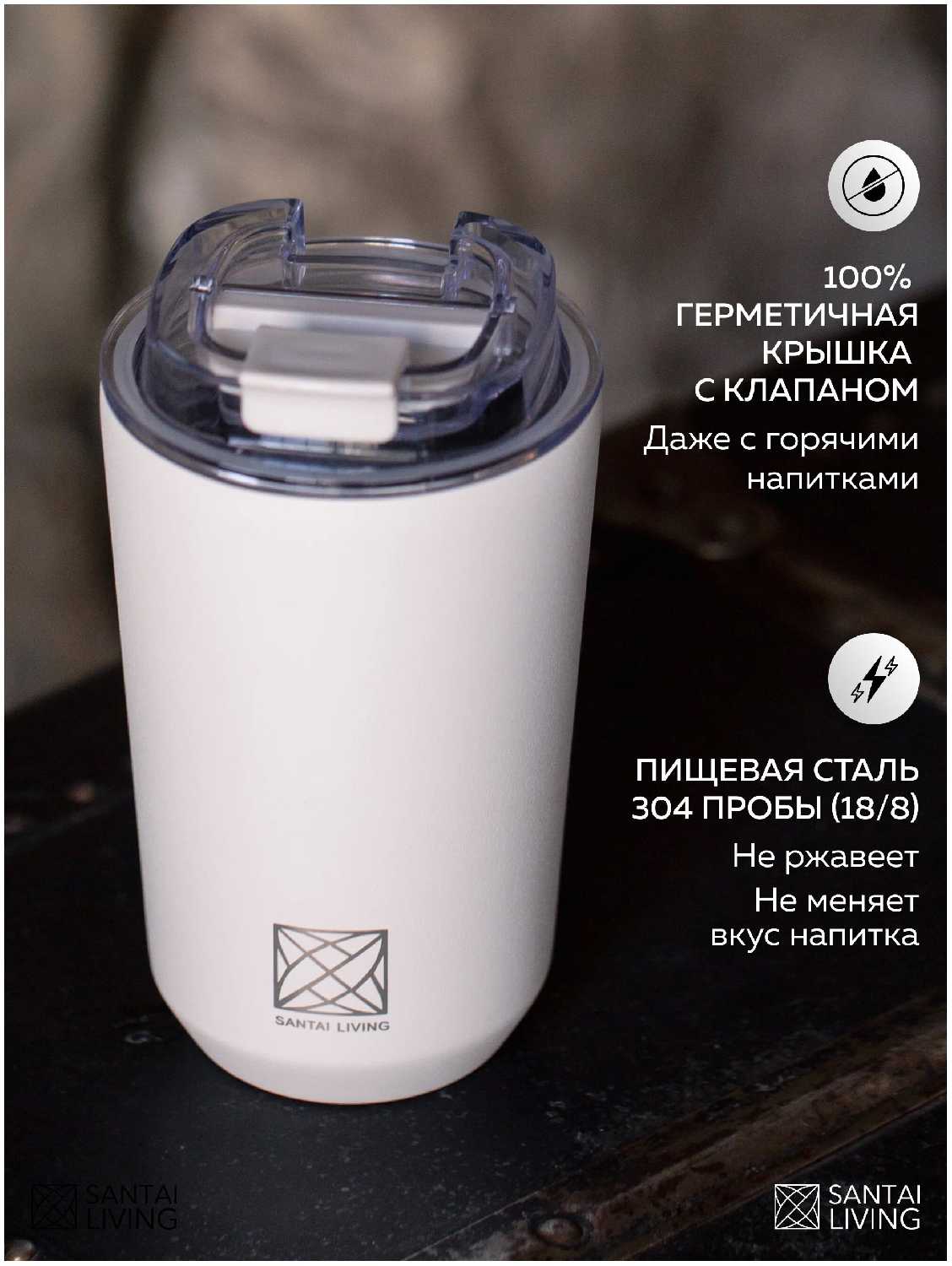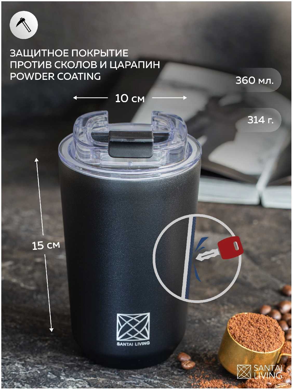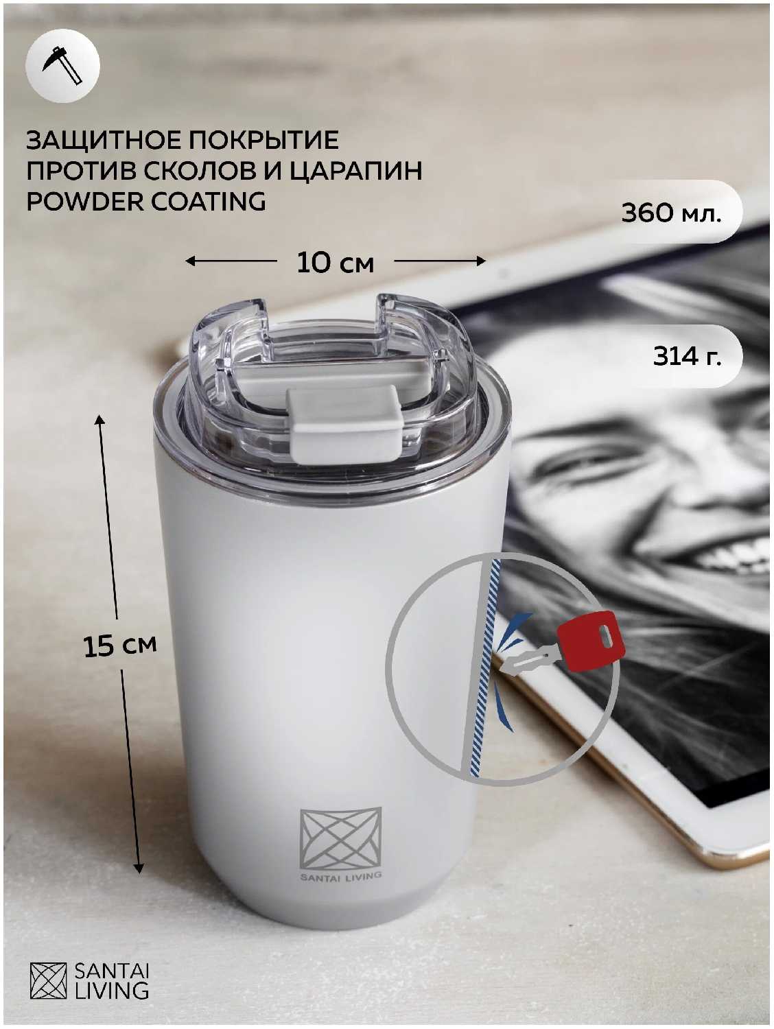 - Кружка сохраняет напиток горячим до 5 часов (по отзывам) благодаря двойным стенкам из нержавеющей стали.