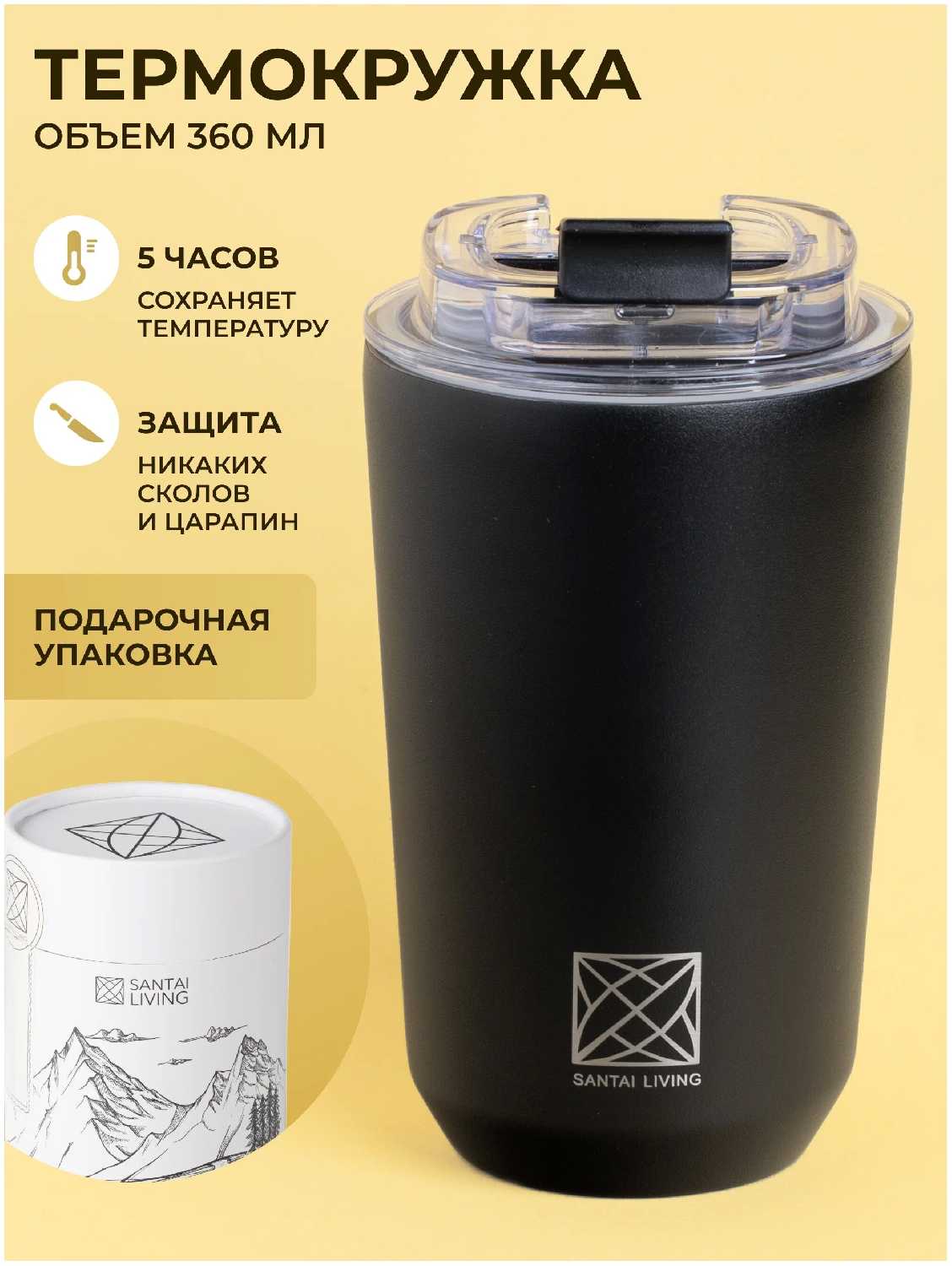 - Оптимальный объем (360 мл) и форма позволяют удобно держать кружку одной рукой, а также помещать в подстаканники автомобилей.