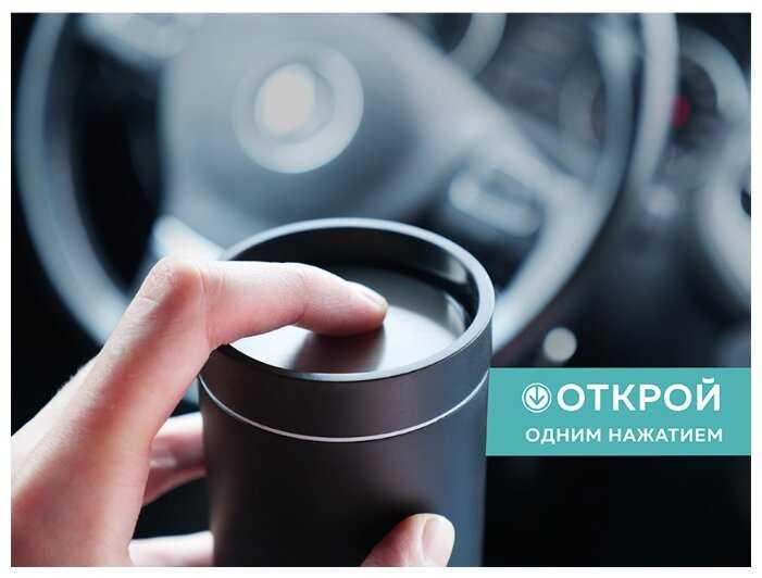 термокружка продуманная: она удобно ложится в руку и подходит для большинства автомобильных подстаканников. Крышка с кнопкой позволяет легко открывать и закрывать кружку одной рукой, что очень удобно, когда у вас заняты другие