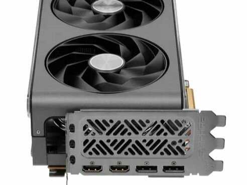 Карта оснащена двумя HDMI и двумя DisplayPort 2.1, что позволяет одновременно подключать до четырех дисплеев, включая 4K@240 Гц. Технология VSR (аналог DSR) работает даже с мониторами, где нельзя отключить DSC. Однако пользователи жалуются на артефакты при 240 Гц — проблема решается снижением частоты или обновлением кабеля. -