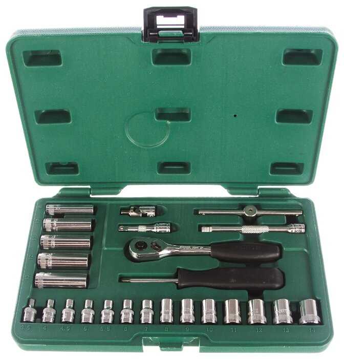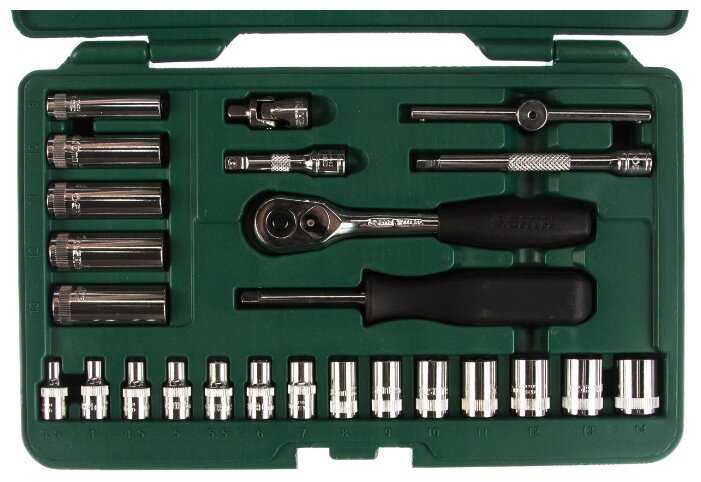 Отличный набор, есть все необходимое лично для меня — 4 отвертки, плоскогубцы, тонкогубцы, набор торцевых головок. Всегда лежит в багажнике теперь, нередко выручал в пути. Сделан из очень прочной стали, есть с чем сравнивать, сатовский набор намного качественней всего инструмента, который до этого был у меня. Есть пожизненная гарантия, то есть производитель уверен в качестве инструмента. Пока проверять не довелось, все как новое, никаких поломок не возникало. За свои деньги отличный набор, хватит его надолго. Отдельно отмечу удобное расположение инструмента в кейсе, все на виду, у каждой мелочи свое место, и ничего не выпадает, не путается.
