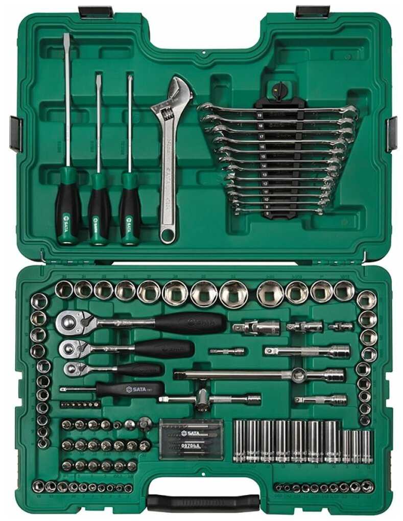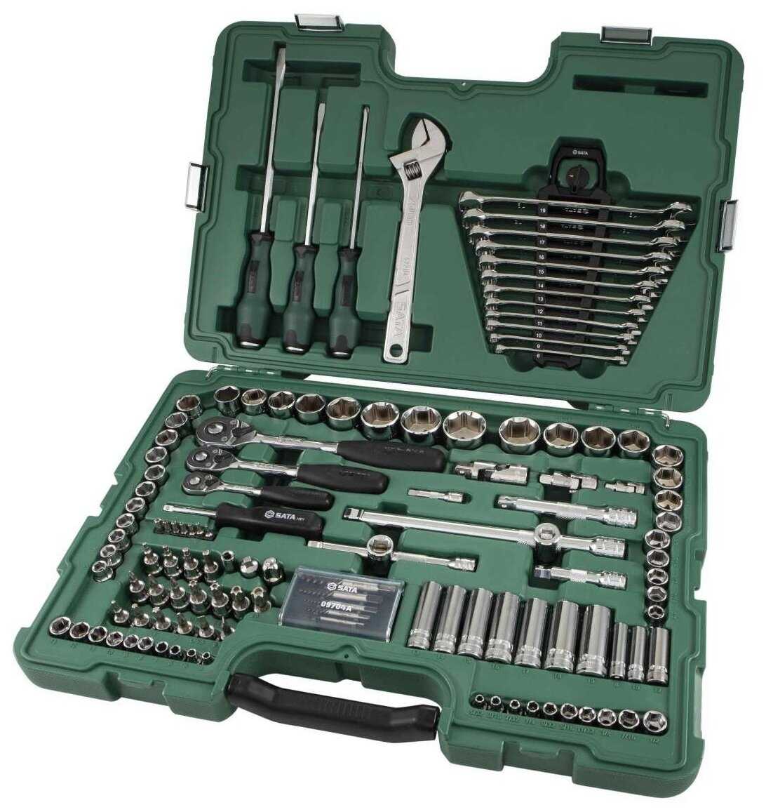 Для автомобильного ремонта взял набор головок, в наборе 120 предметов, это делает его очень функциональным, за счёт чего подойдёт даже для профессионального ремонта. Фирма SATA мне нравится тем, что инструменты они производят долговечные, качественные, плюс ко всему дают пожизненную гарантию почти на все. В составе набора есть различные гаечные ключи, торцевые головки, биты. Все изделия из прочного высококачественного материала, который прослужит максимально долго. Всё упаковано в достаточно вместительный кейс с ручкой, каждый инструмент находится на своём месте. Набором очень доволен.