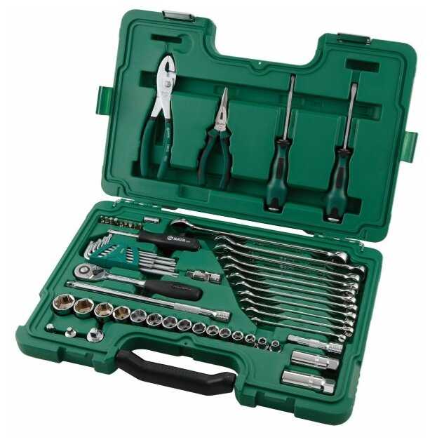 SATA 09502 в наборе 26 обязательных предметов для каждого мужика, кто не белый воротничок" и может что-то сделать сам. Инструмент неввероятно качественный. При использовании не обнаружил никаикх сколов или микротрещин из-за которых слезает краска потом. Все в первозданном виде. Отличное качество стали, замечтальный набор!
