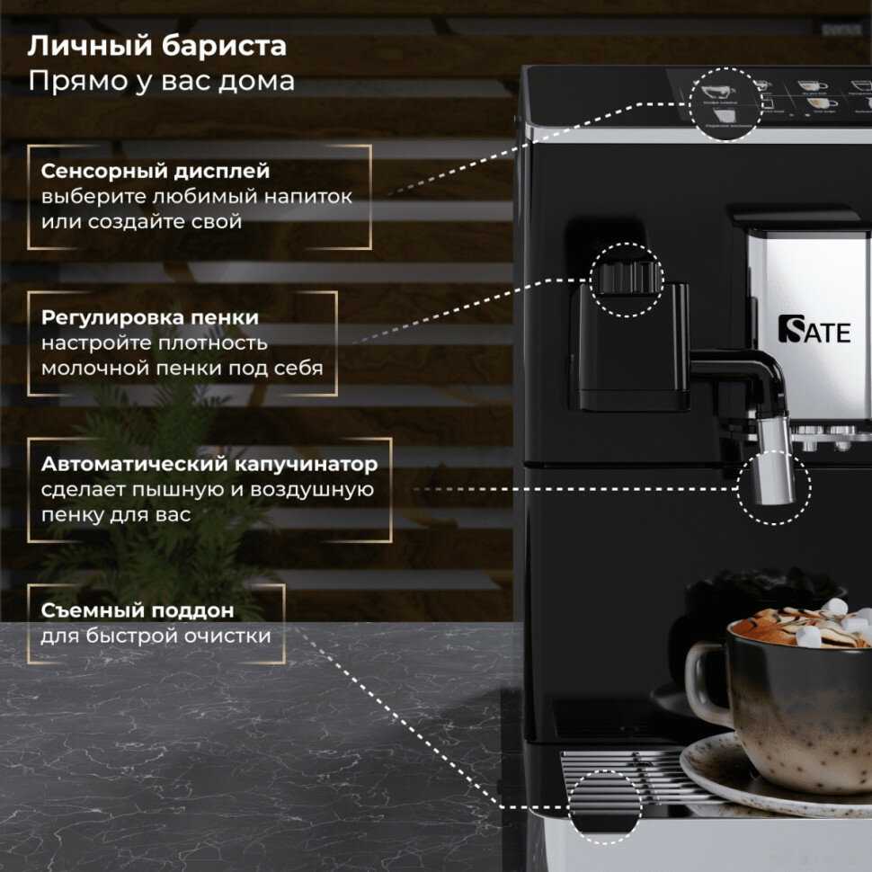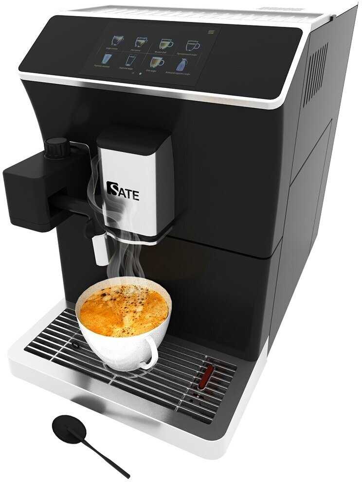 - + цена, опции,и конечно качество напитков, 2 бойлера для нагрева воды что исключает ожидание между капучинатором и напитком, довольно большой отсек для жмыха что не вынуждает очищать после одной или двух чашек, возможность использовать молотый кофе, возможность промывать заварочный блок самостоятельно причём очень просто без танцев с бубном, возможность предустановить настройки для каждого напитка на панели , а так же много других настроек одна из которых очень полезная это жёсткость воды. Приятный бонус это кг кофе зерна в подарок.Чуть не забыл, размер не большой , я так считаю, бывают и больше.