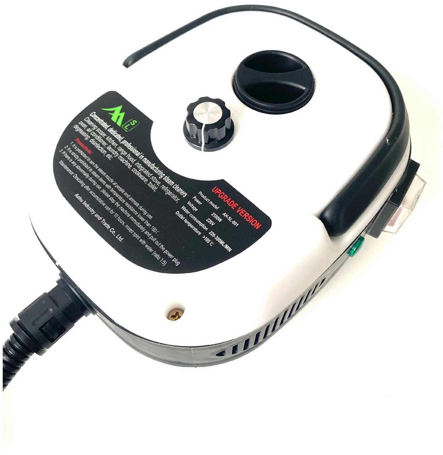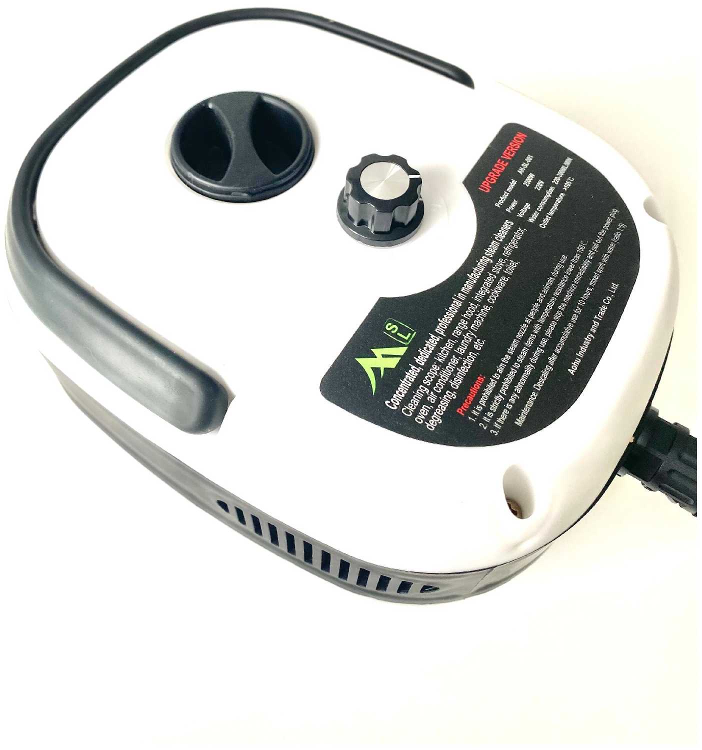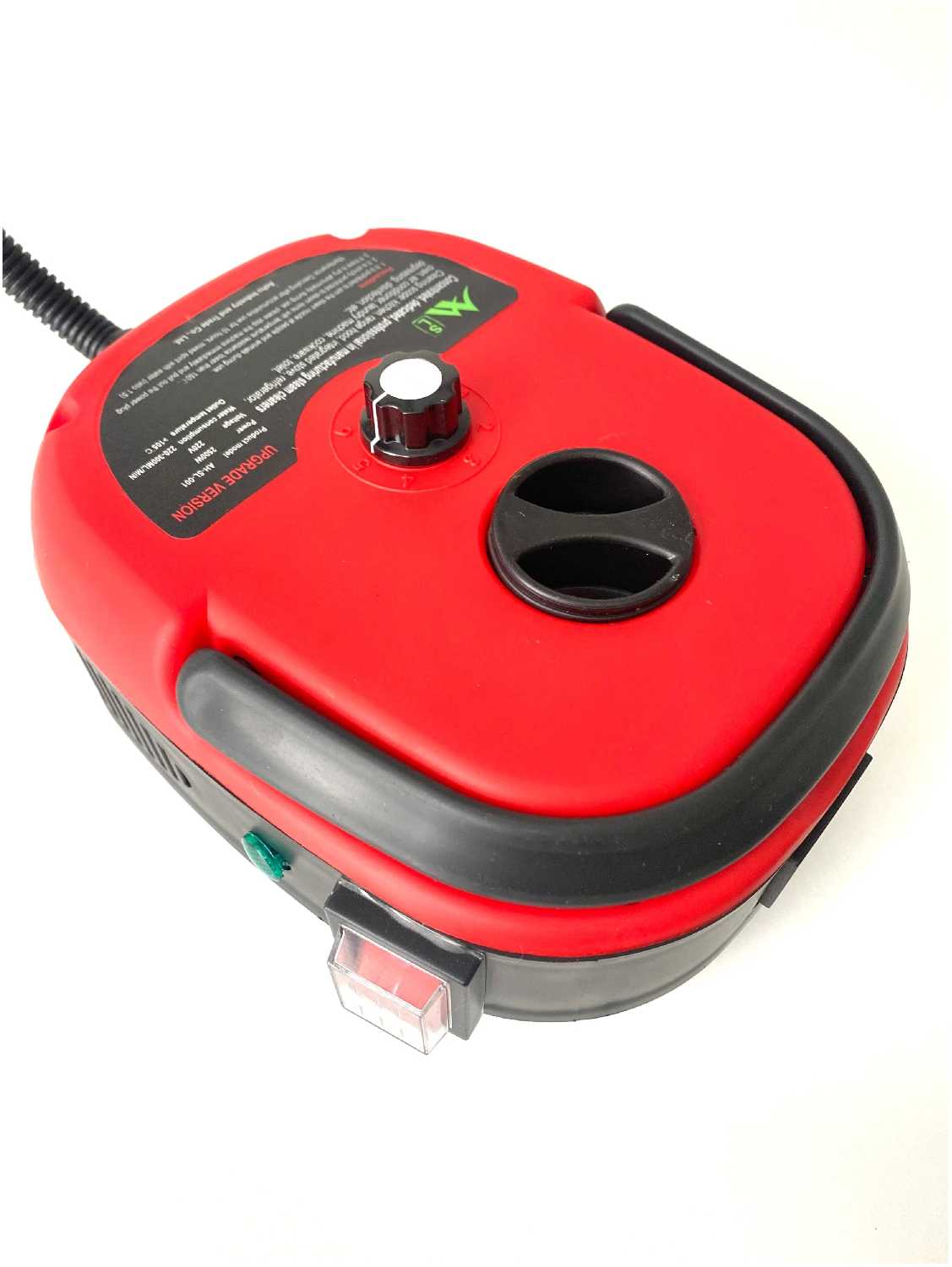 - - Нет клавиши управления на ручке.Поэтому одной рукой нужно нажать кнопку включения,второй держать шланг и желательно направленный в тазик потому что, в начале вместо пара брызгает вода,и только потом идёт пар.Давление пара хорошее,но недостаточно горячее.Что бы убрать застоявшиеся пятна,нужно поднести насадку на расстояние 2 см,именно там максимальная температура. С расстояния 15 см пар тёпленький.