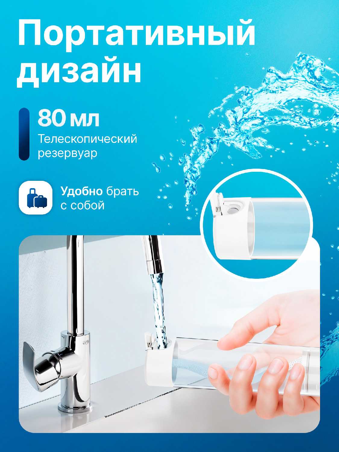 - + Отличный компактный дорожный ирригатор