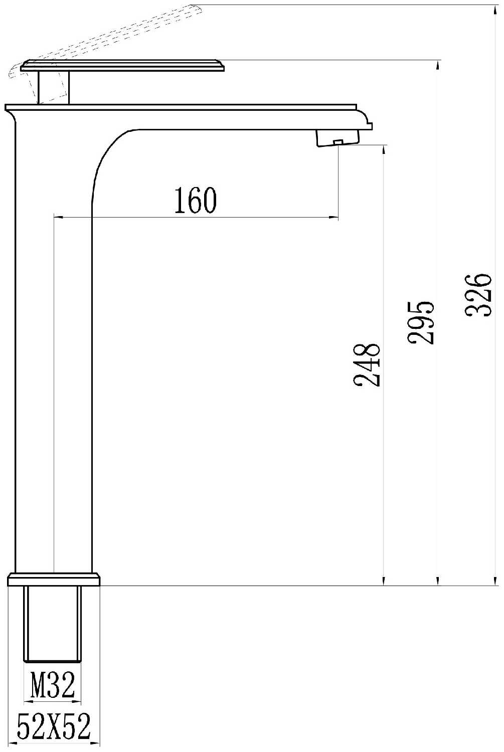 - высота излива: 248 мм.